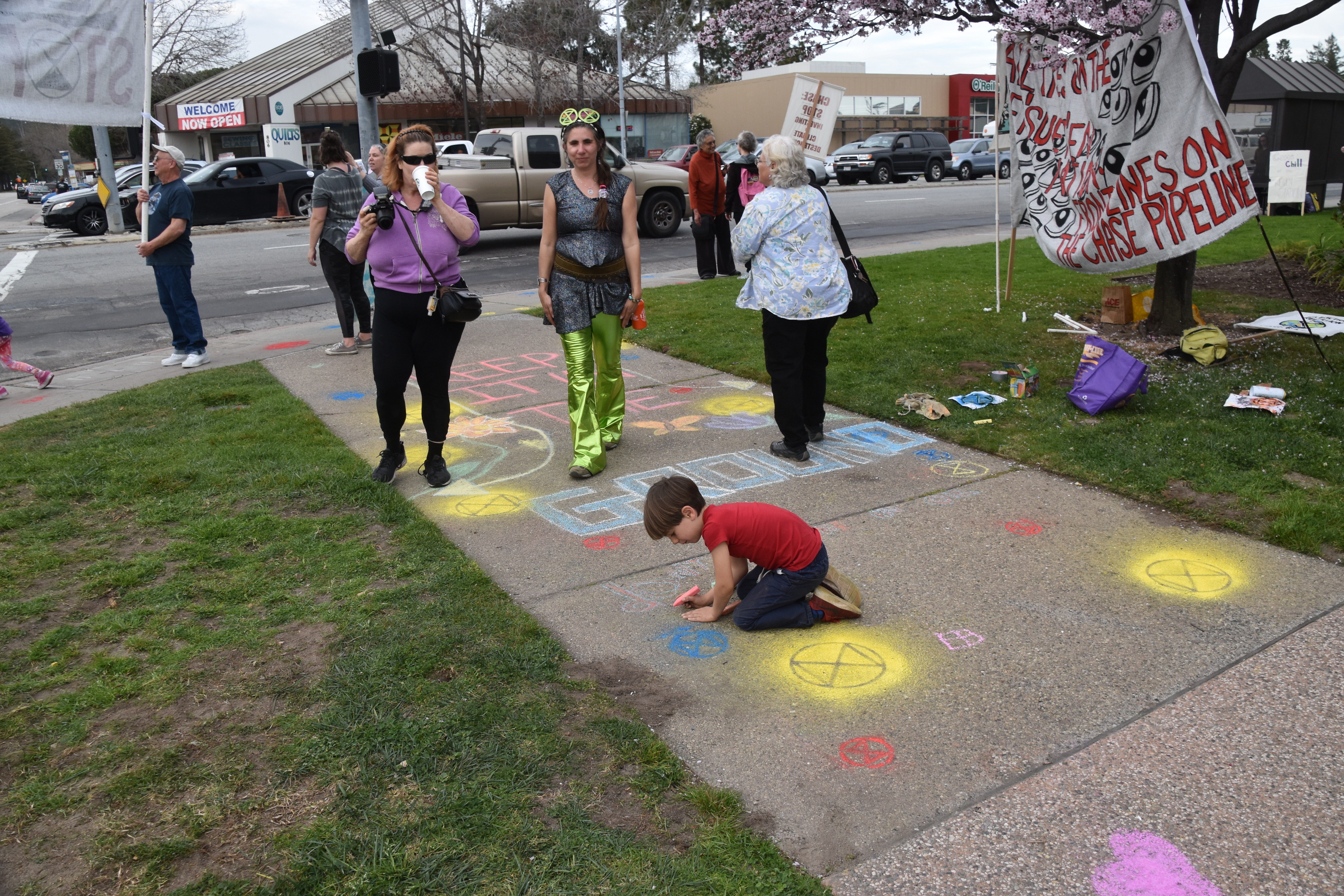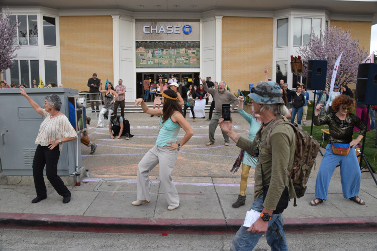 Once again many of the people that took part in the dancing and singing were of all ages. Children, elderly, and families, everyone had a great time as rush hour traffic drove by, many honking their horns in support while the walkways of the bank were chalked with many messages.