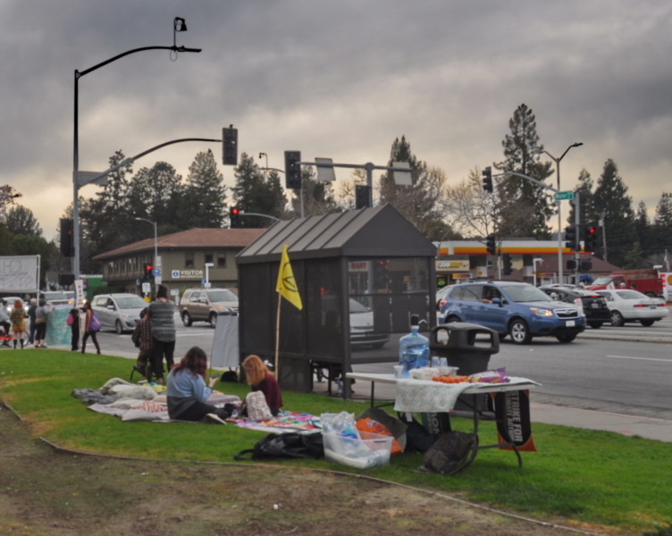 The demonstrators provided a “Regen Station” with water, cookies, free chair massage, blankets and throw pillows.