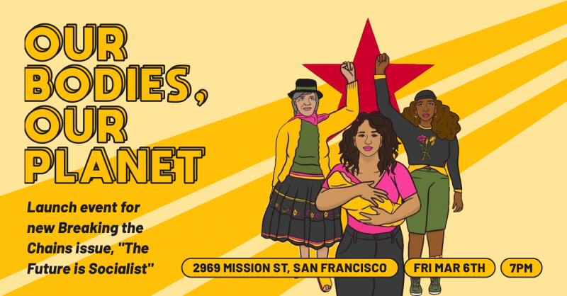 Breaking the Chains editor Nathalie Hrizi will speak on the current state of the women's movement, from Weinstein's conviction to the struggle to defend Roe v Wade and how that is connected to the larger struggle for women's liberation and for socialism. San Francisco Public School educator Jael Castro will speak on the leading role women have played in the critical struggle to respect the environment, from Greta Thunberg to Gloria Capitan to Berta Cáceres and others. Pick up your copy of the latest issue, meet some of the writers and activists that make Breaking the Chains a reality and get involved in the struggle for women's liberation and for socialism!