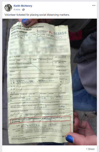 Santa Cruz Chief of Police Andrew Mills has addressed a cease and desist letter to Keith McHenry, the co-founder of Food Not Bombs, demanding McHenry, "cease feeding people at the clock tower immediately." Additionally, Police have issued a public notice to vacate the area of the Town Clock, which states that all personal belongings must be removed from the park by March 25 at 9 am. Since the Coronavirus/COVID-19 shelter in place order issued by the County took effect on March 17, Santa Cruz Food Not Bombs and the Santa Cruz Chapter of the Homeless Union have been sharing food in downtown Santa Cruz around the clock. On March 20, police evicted residents from the homeless encampment located next to the post office, which is across the street from the Town Clock, and attempted to prohibit advocates from sharing food in the area. On March 23, Food Not Bombs and the Santa Cruz Homeless Union distributed 81 motel vouchers to unsheltered individuals, which brought a large group of people in search of shelter to the location. (Photo: Cease and decist letter.)