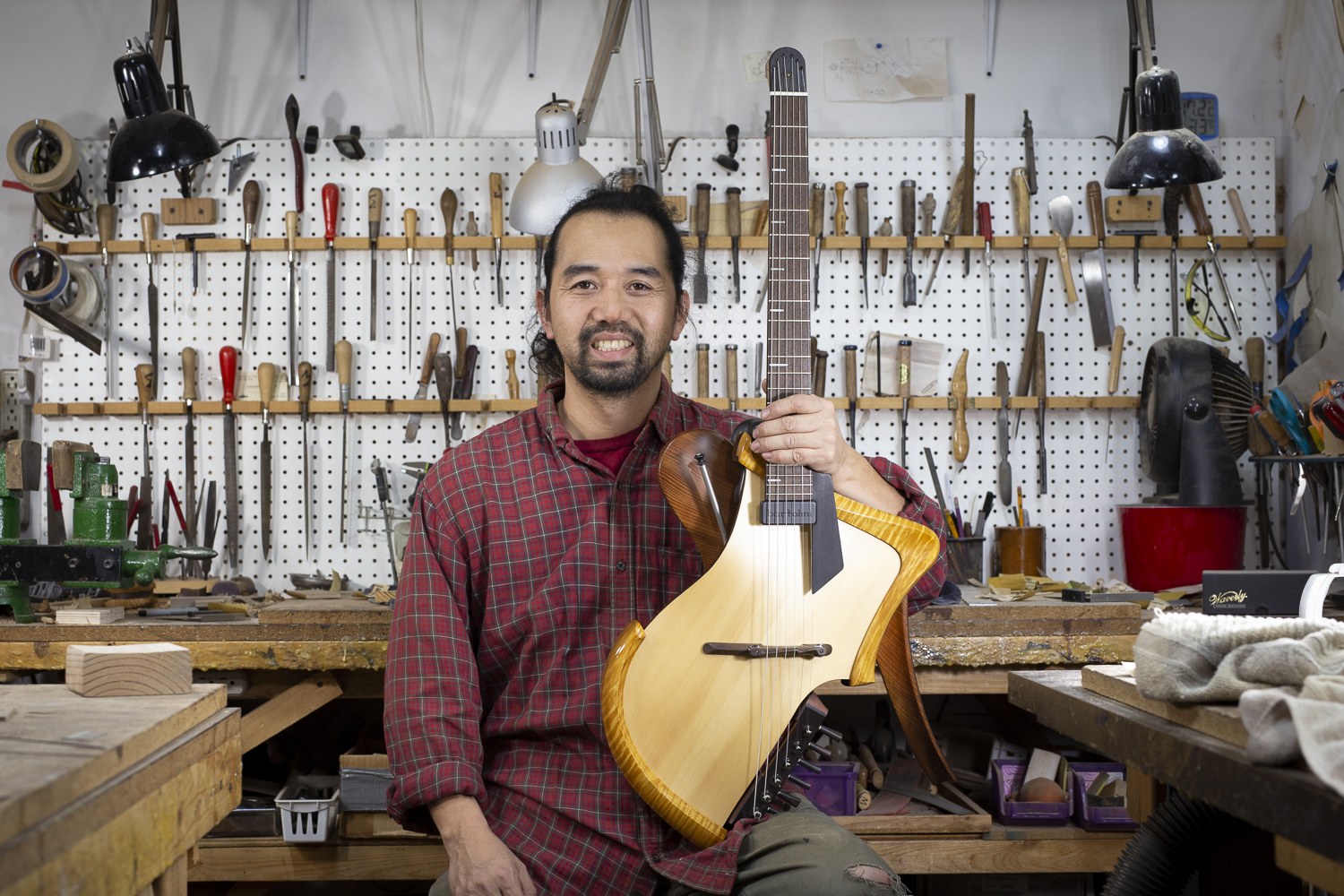 So, I followed my heart. I quit my job, and in 1997 I ended up going to the Roberto-Venn School of Luthiery in Phoenix, Arizona. I still have family in Tokyo, Japan.