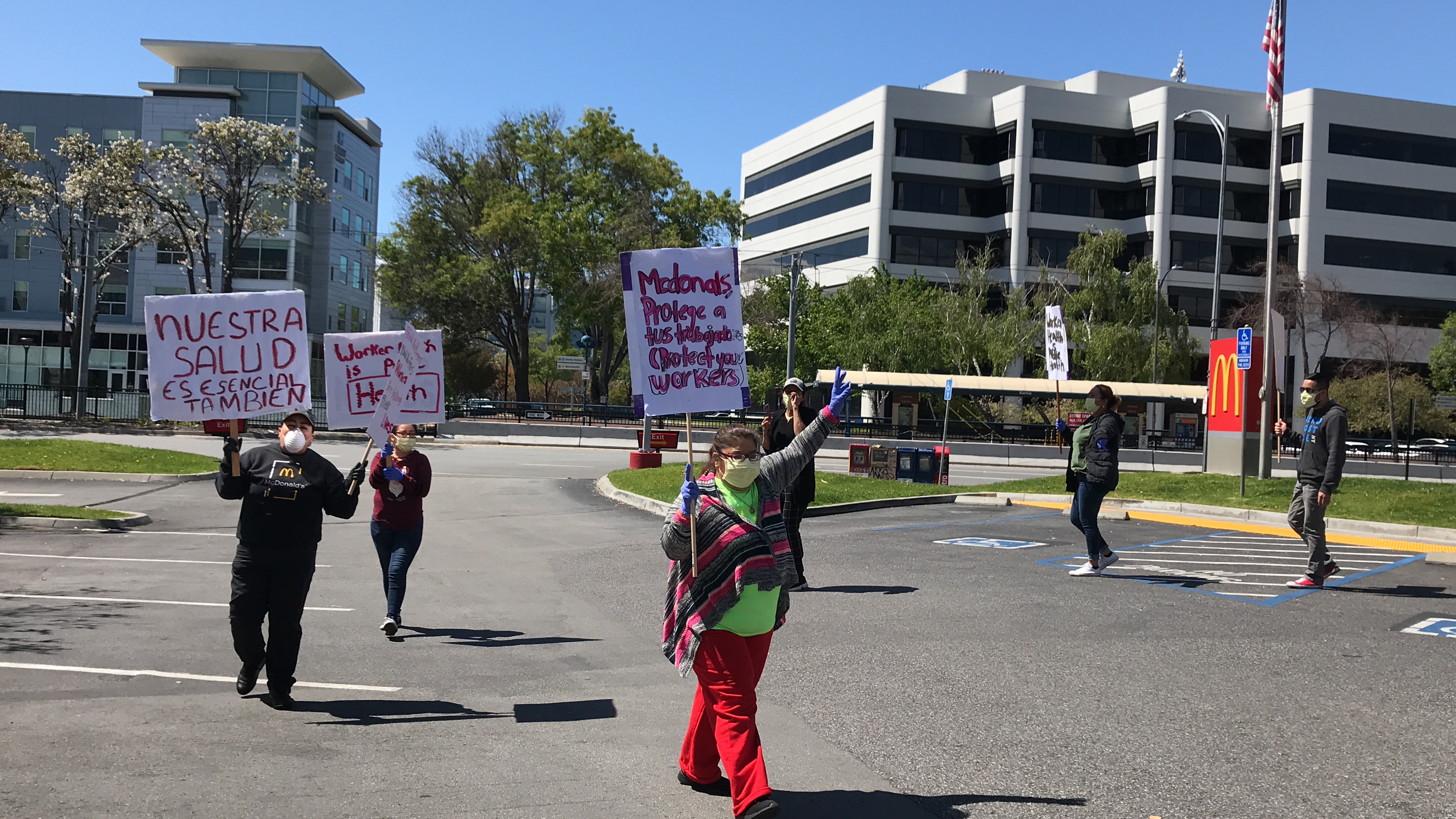 On April 9, McDonald’s employees demonstrated by driving their cars in a manner to disrupt the fast food company’s business at three San Francisco Bay Area locations. They are demanding that the fast food chain give workers masks, gloves and a $3 an hour pay increase.