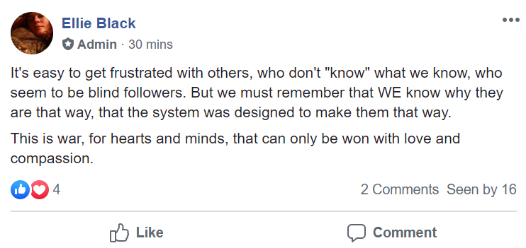 "It's easy to get frustrated with others, who don't "know" what we know, who seem to be blind followers. But we must remember that WE know why they are that way, that the system was designed to make them that way."