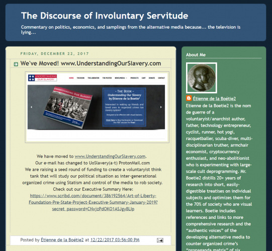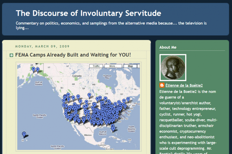 Posting as “Etienne de la Bootie2,” a pseudonym inspired by the French writer from the 16th century, Lichtman also wrote extensively about the H1N1 virus pandemic of 2009 (also known as swine flu) in his blog "The Discourse of Involuntary Servitude".