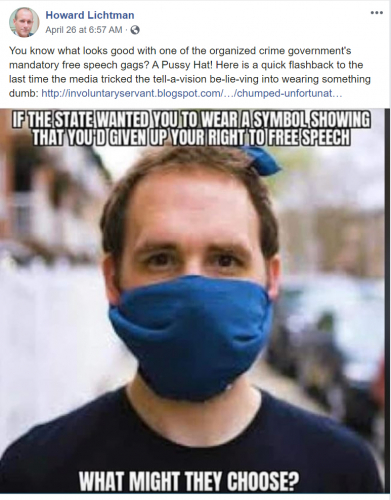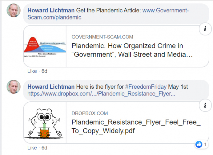 Howard Lichtman, founder of the Art of Liberty Foundation, an extreme Libertarian political organization, wrote a lengthy COVID-19 prospectus for the foundation’s website. The prospectus stated, in part: