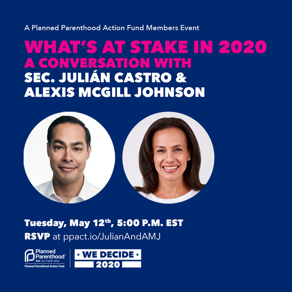 Former Secretary of Housing and Urban Development Julián Castro and Planned Parenthood Action Fund Acting President Alexis McGill Johnson will discuss threats to reproductive rights and other critical issues leading up to the 2020 election.