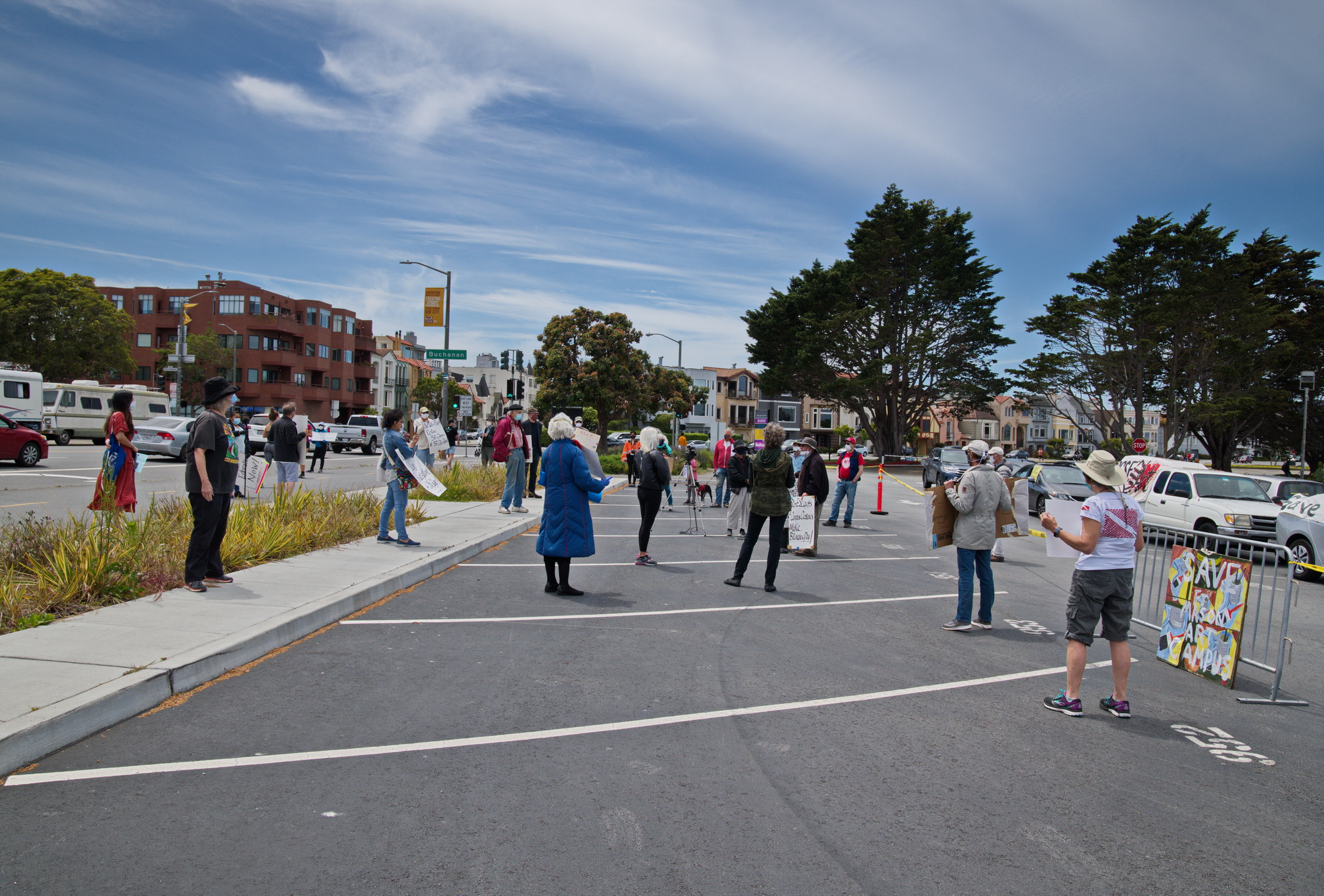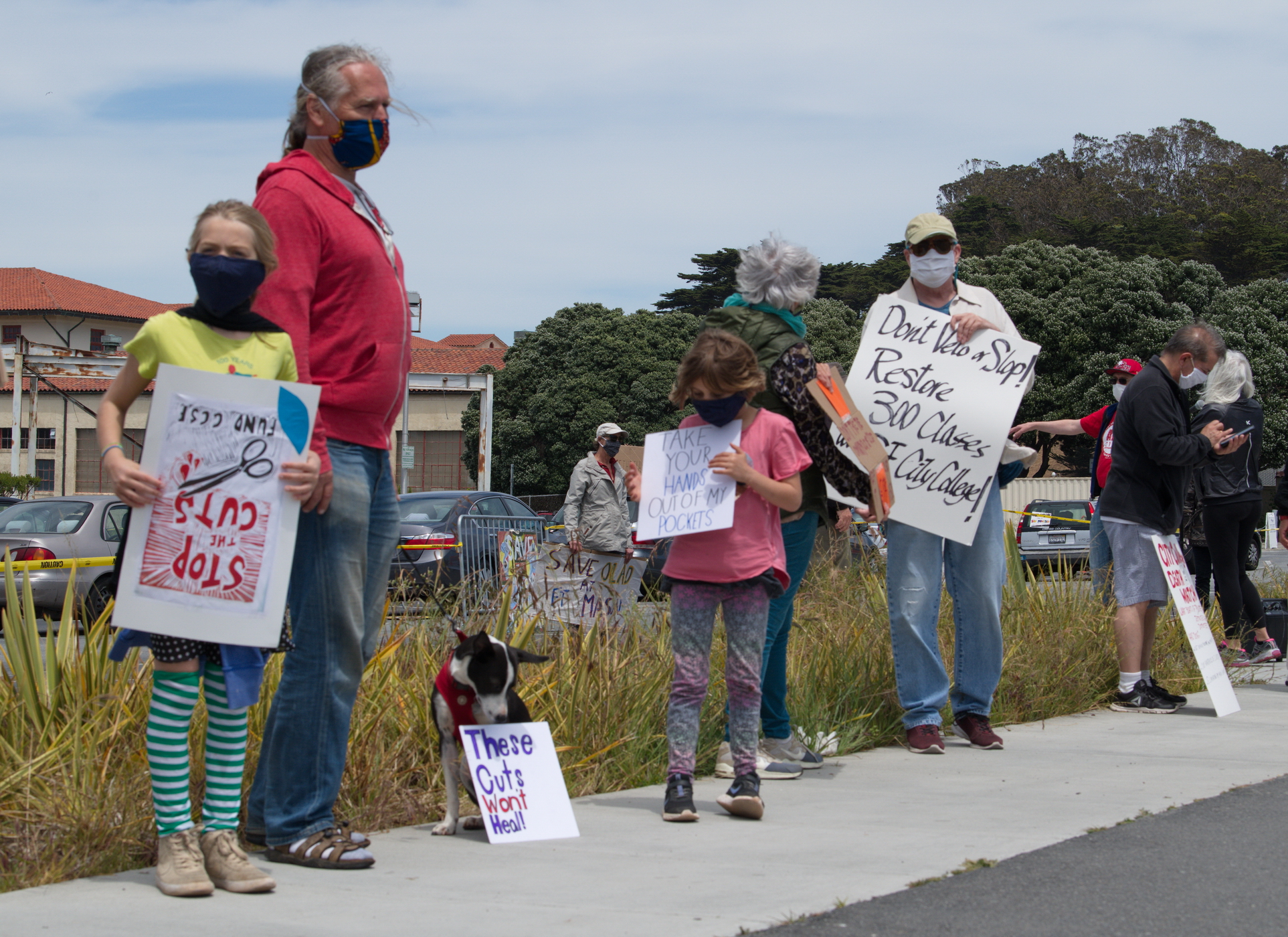 The day was sunny and clear, made even clearer by San Francisco's reduced auto traffic. Among the joggers and cyclists, the protesters explained that with its seventy billionaires, San Francisco should have no problem funding the continuation of the much appreciated CCSF Arts and other programs.