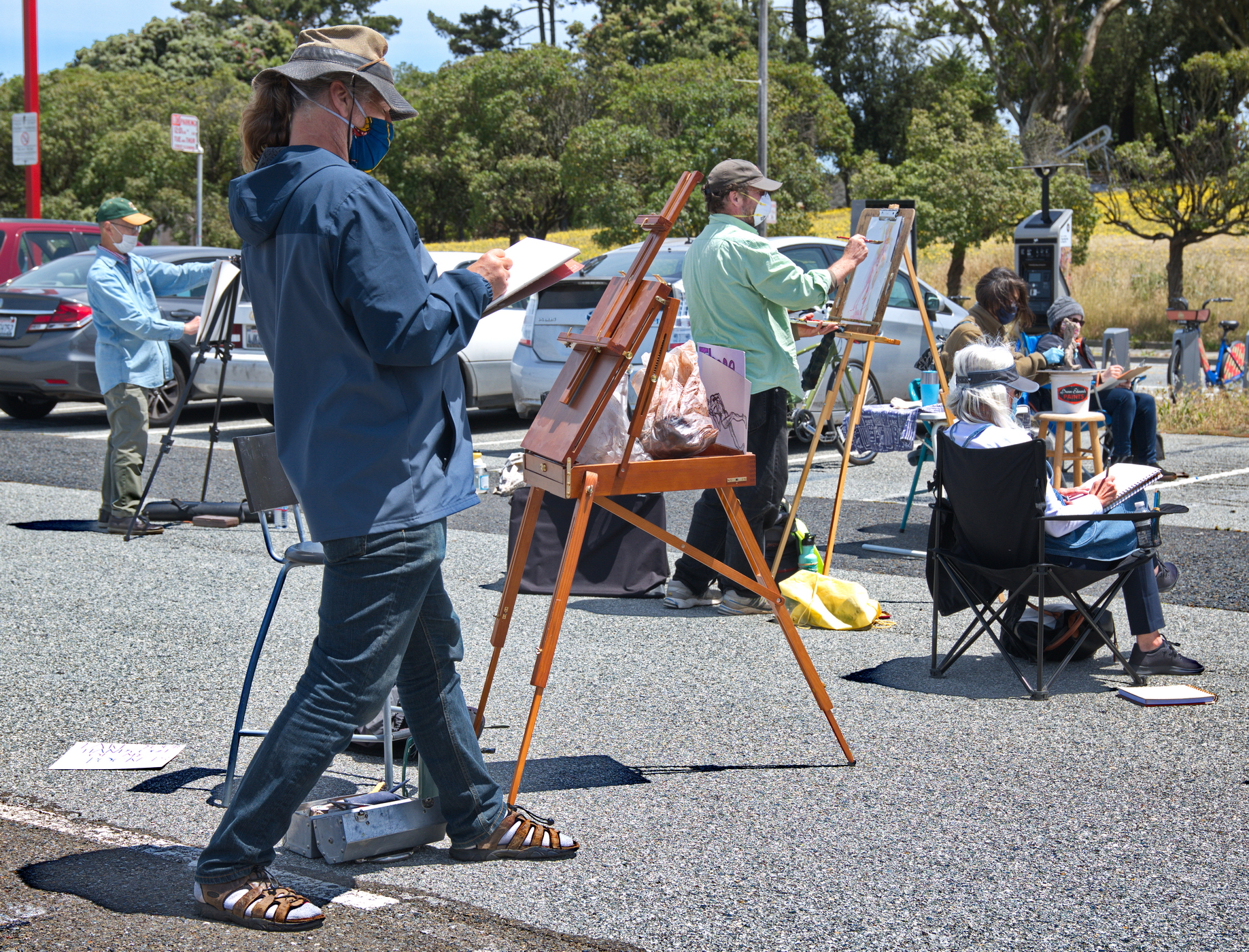 With their easels, paints and clay, senior artists converged in the huge Balboa Reservoir parking lot, across from the Community College of San Francisco, to protest the possible closure of the Fort Mason Arts Campus.The Arts Center has been a valuable public resource for San Francisco's seniors and its potential loss ignited the novel protest. With this protest, the artists demonstrated their skills and serious artistic commitments. A talented saxophone player set a contemplative mood to the event. The beautiful models did not hurt either.