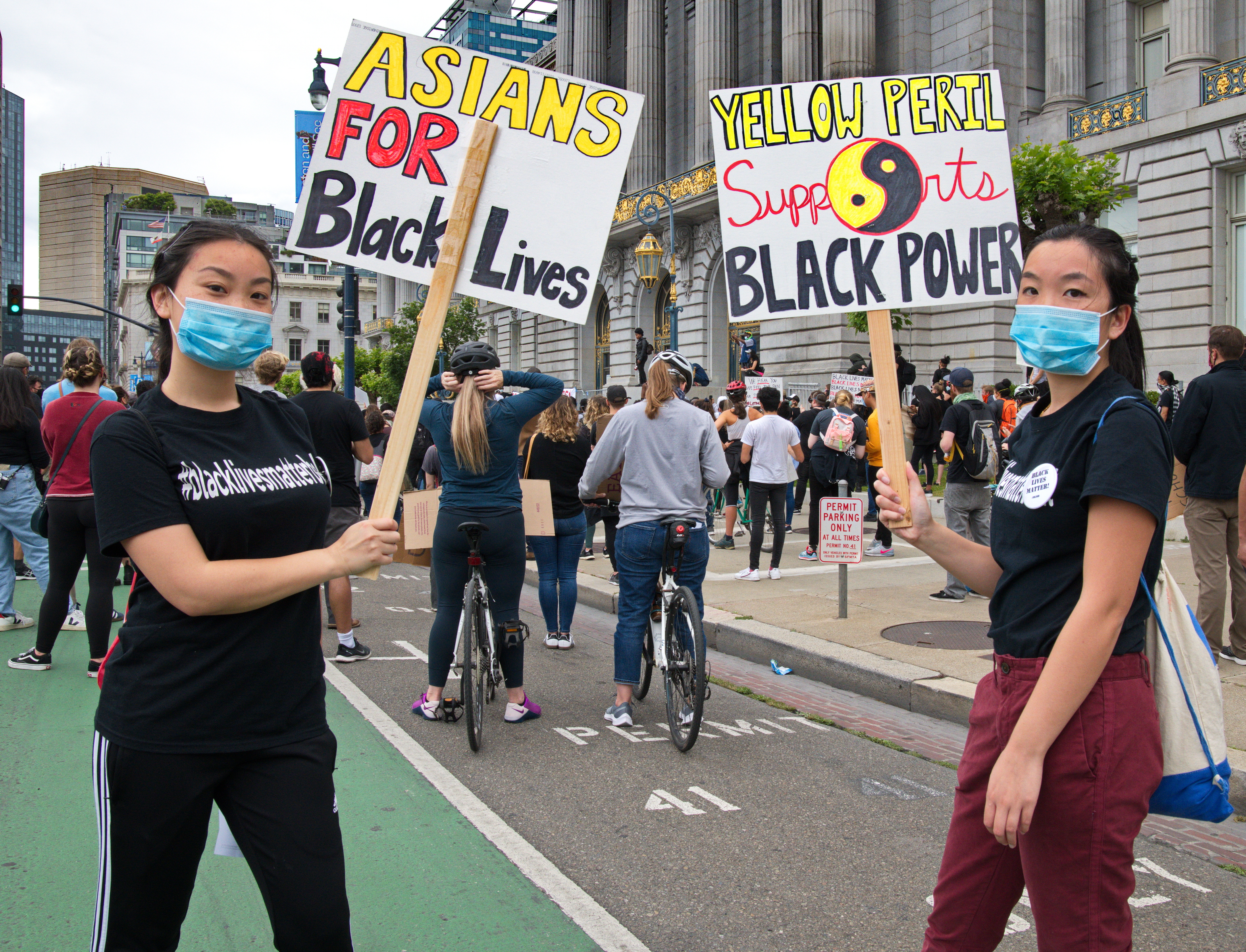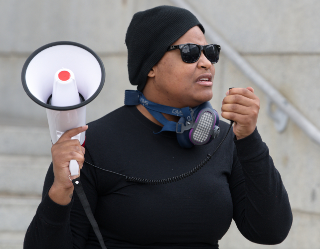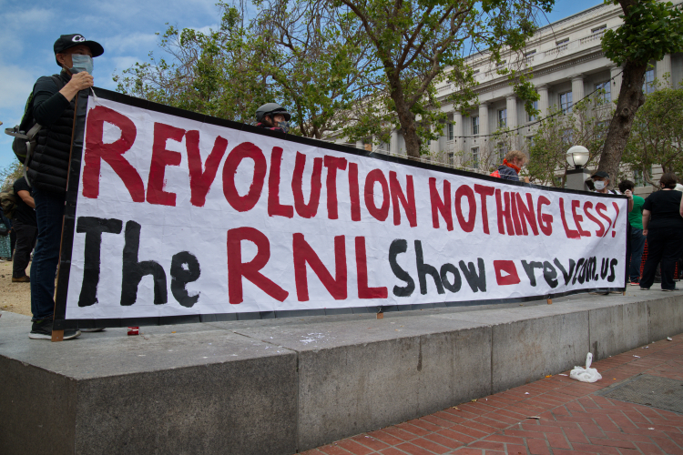 Over 1000 in peaceful protest at San Francisco's City Hall.
