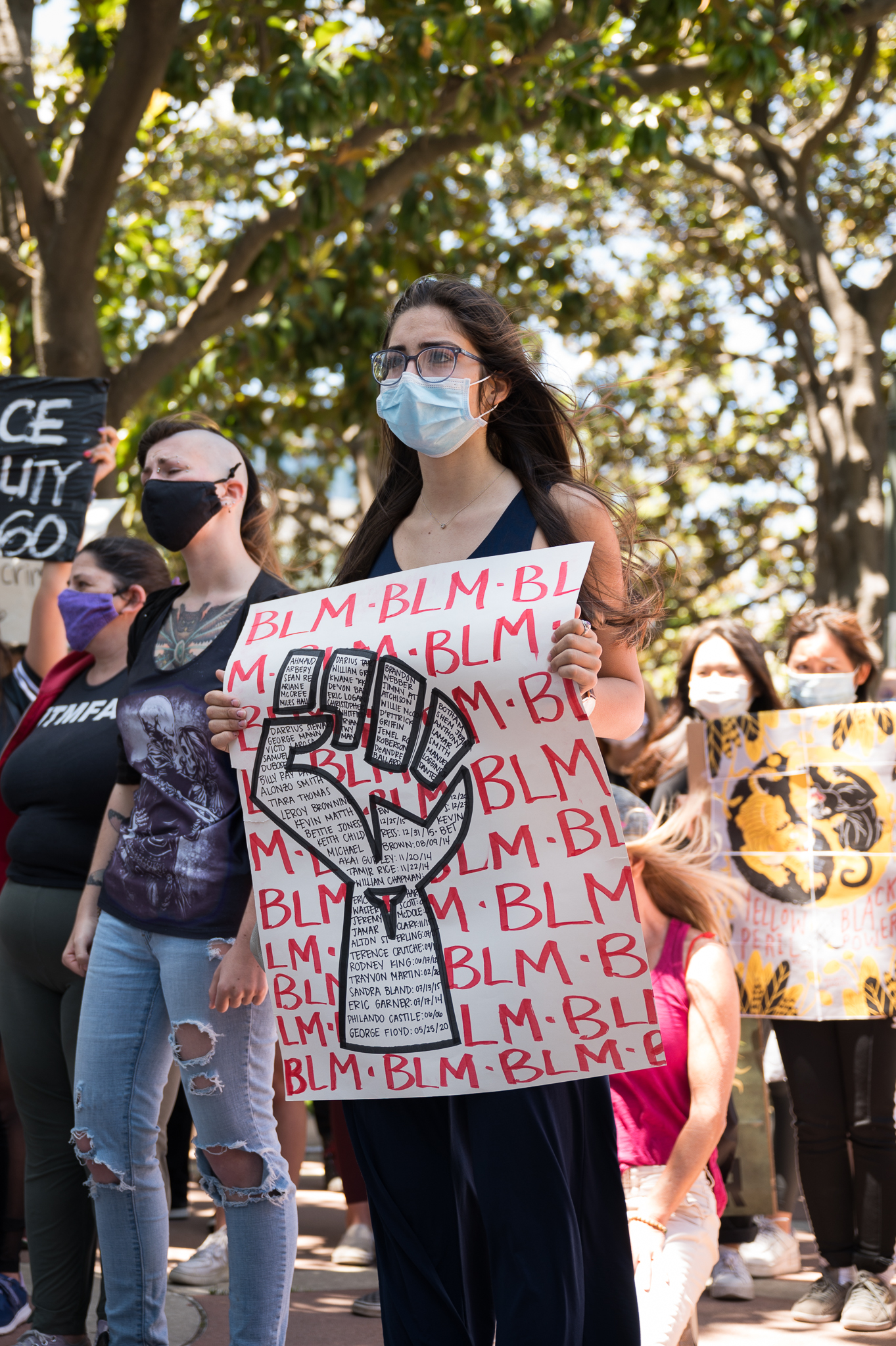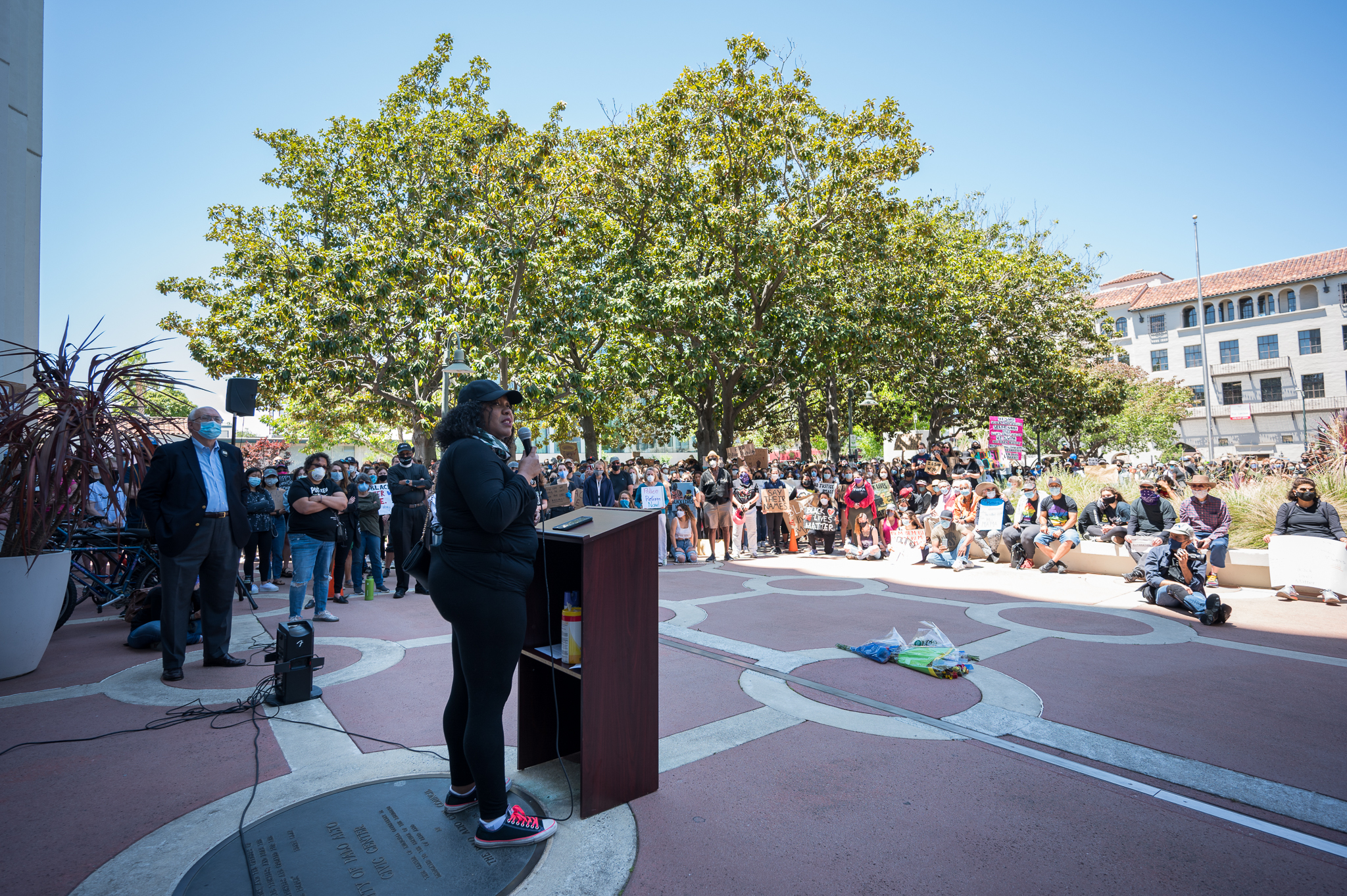 A national movement calling attention to deadly police policies is demanding the demilitarization and defunding of police forces throughout the nation. At a rally in Palo Alto's King Plaza, protesters called out loudly for defunding the Palo Alto Police Department, interrupting an uncomfortable looking Mayor Adrian Fine's address for a few minutes. Despite their cries, not a single member of the city council supports defunding the police or pursuing any major structural change that would prevent the kind of harassment that many Black Palo Altans attested to at the June 6 rally of thousands.