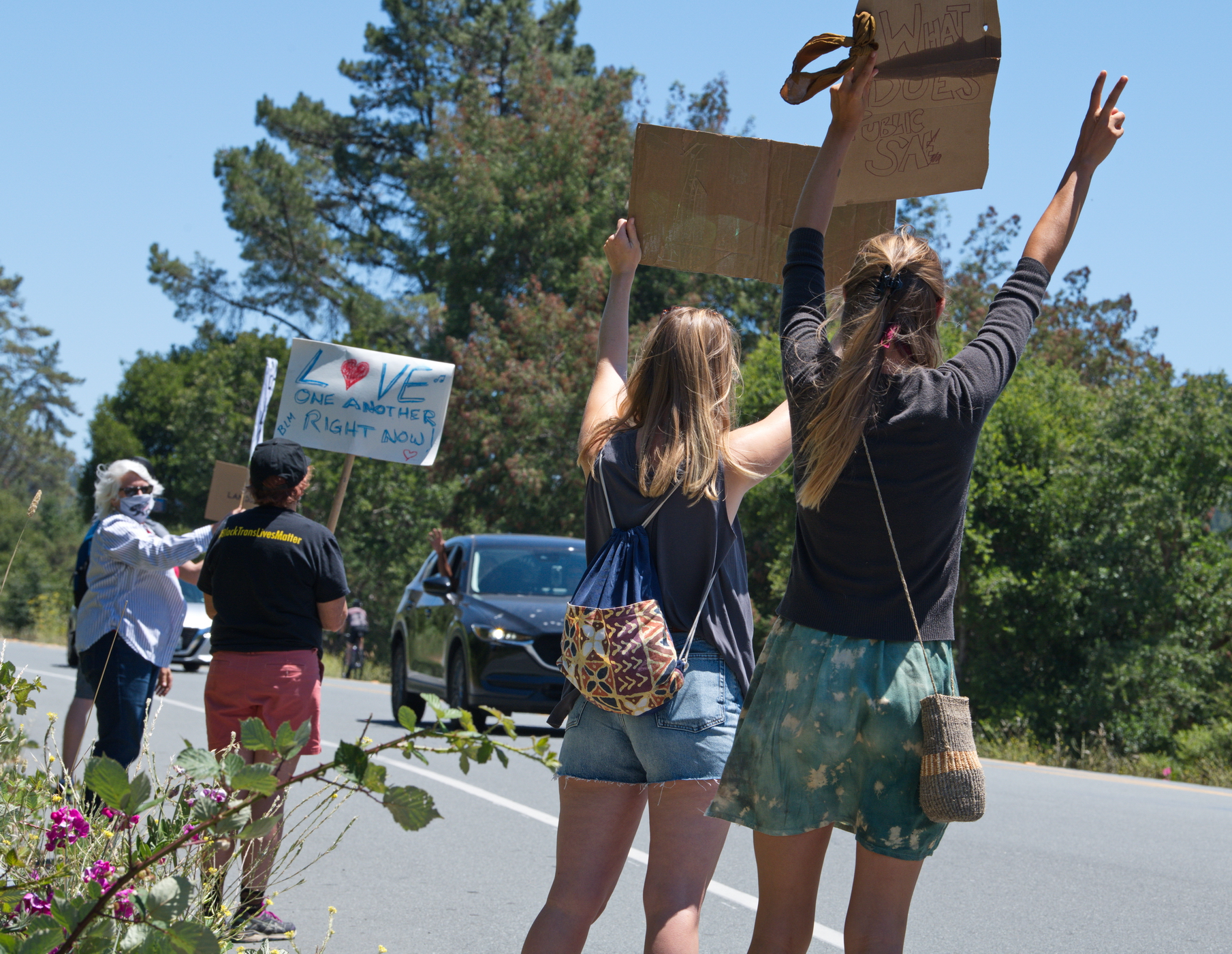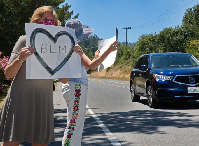 Just about every passing car in Sir Francis Drake Blvd honked in approval as San Geronimo Valley residents lined the highway holding BLM signs.The valley, just north of Fairfax, with its forests and open fields, and total lack of commercial developments, consists of three small towns with a total population of about 2000 families. It is largely unknown to the Bay Area. That's what most people there like about it. They have successfully resisted development to the extent that they are regularly accused of nimbyism.