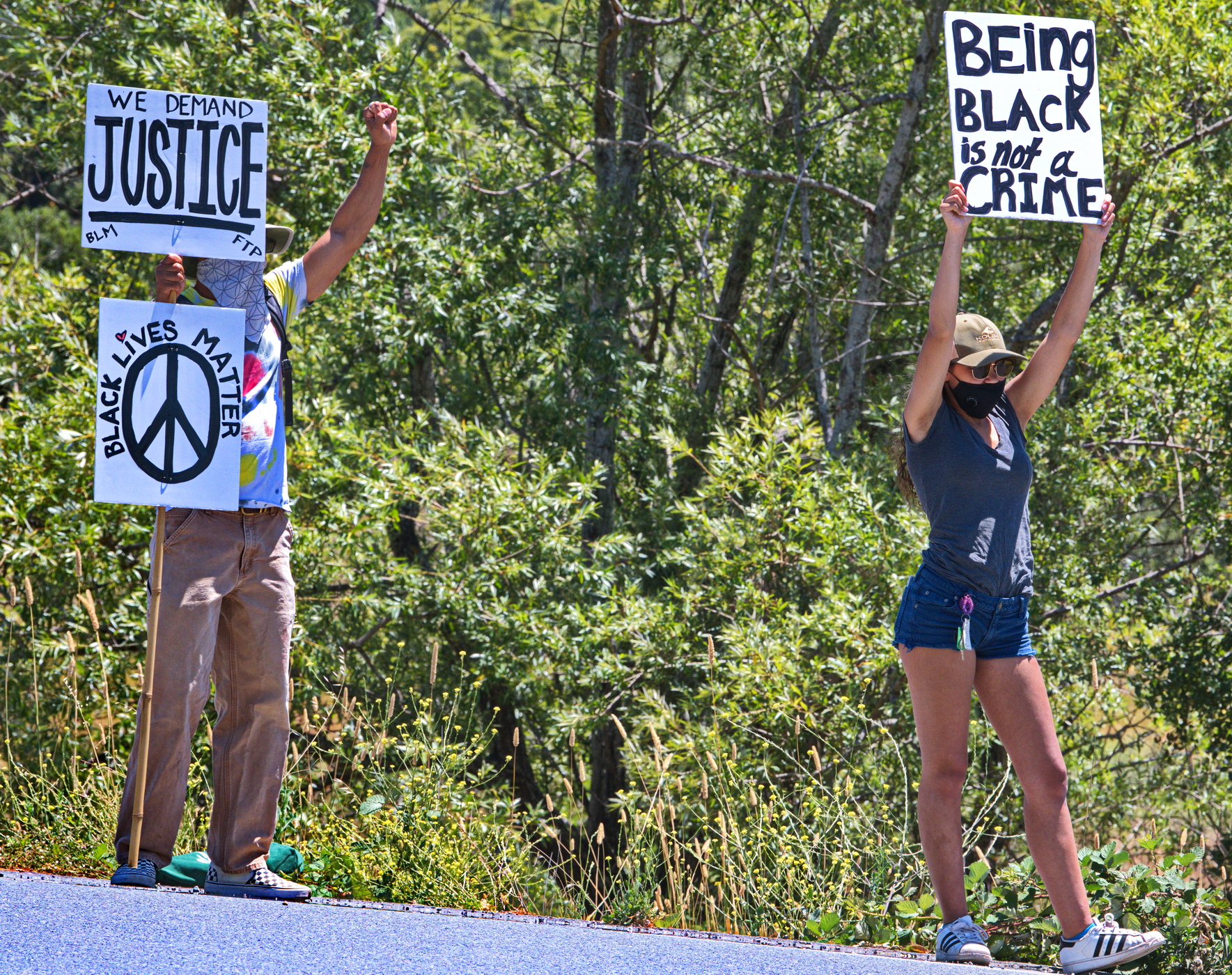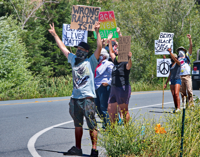 No longer willing to ignore the nation's racial turmoil, valley residents staged a Black Lives Matters Protest. On Sunday, July 5th, about thirty people staged their "Rally In The Valley" protest along the main highway. Essentially all cars honked their approval as they sped by.