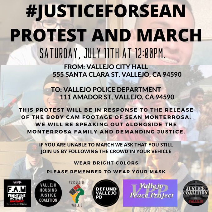 Protest and march in response to the release of the body cam footage of Sean Monterrosa's murder by Vallejo Police officer Jarrett Tonn.