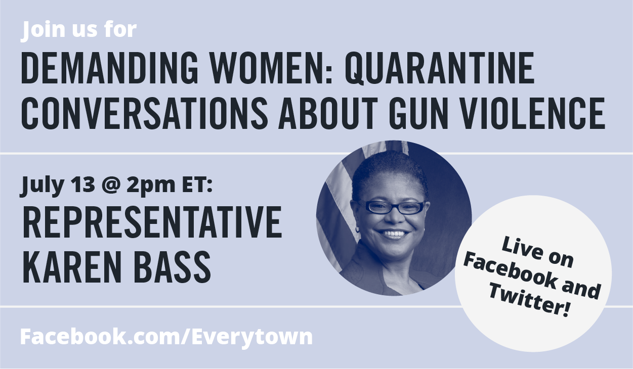 Join us at 11 AM PT (2 PM ET) and watch the livestream of this important conversation, featuring Moms Demand Action founder Shannon Watts and Representative Karen Bass,