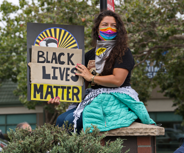 Demonstrators kneeled for eight minutes and forty six seconds in remembrance of George Floyd, murdered by police.