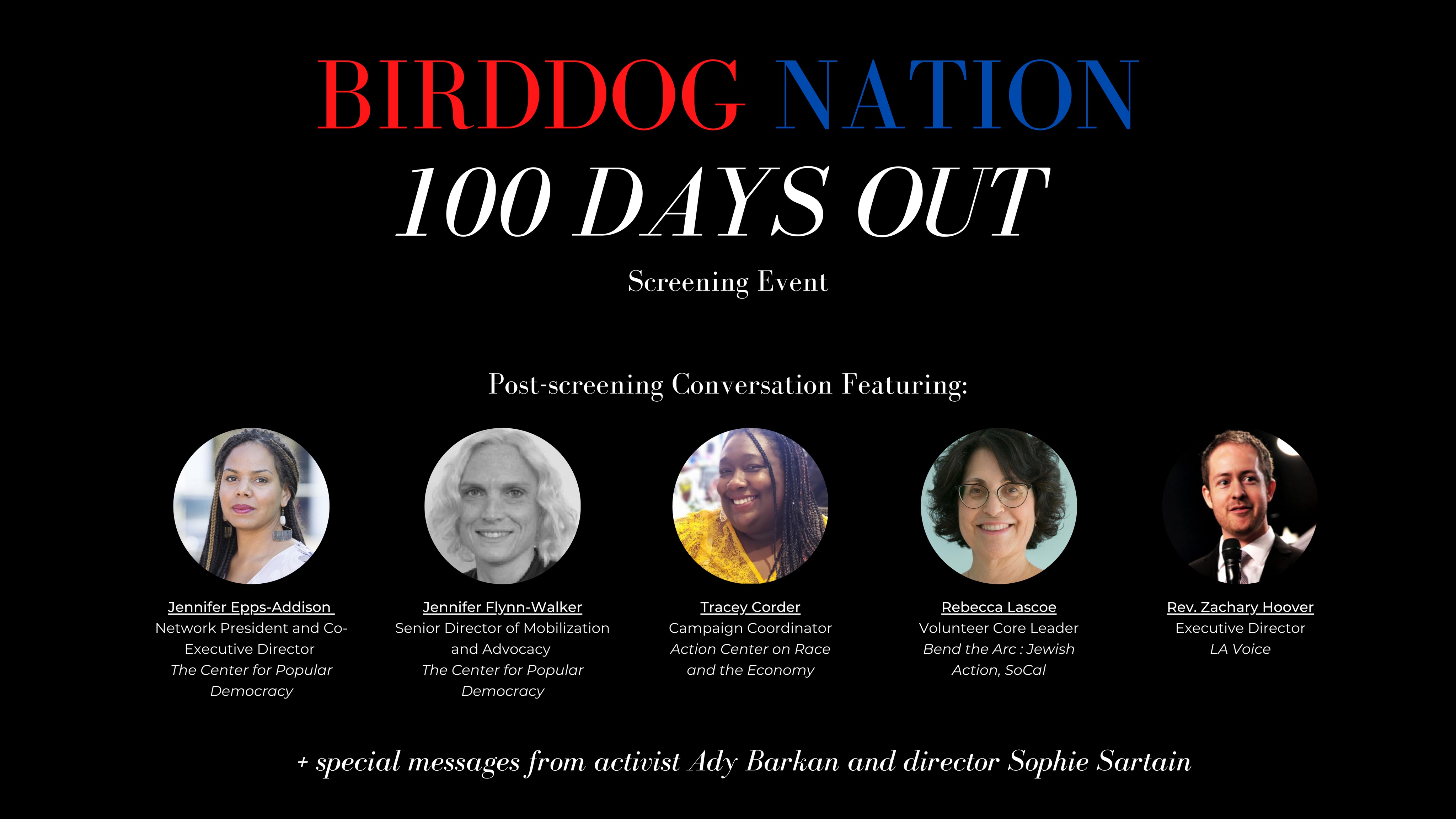 Join us for a FREE virtual screening of "Birddog Nation" and a conversation on what 100 days until the Nov 3 election means for progressive action.