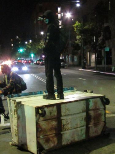 I'm happy to say that I did not find any spent munitions to photograph. No photos for evidence of police aggression. I didn't stay for the 2nd go to OPD. What I saw was a peaceful protest where people gathered to admonish capitalism and racism. And other forms of genocidal practice inflicted upon the people by the state.