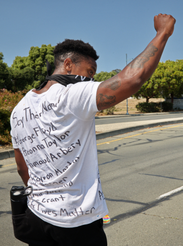 Vallejo's activism continued on Saturday with a rally and march on the city's waterfront.After assembling in Waterfront Park, several hundred people, many with their children, marched across the expanse of green, into town, then back along the water's edge.