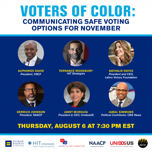 On the 55th anniversary of the Voting Rights Act, come join the NAACP for an in-depth discussion hosted by the Human Rights Campaign which will share the first results of a national survey regarding voters of color, including LGBTQ voters of color, to determine