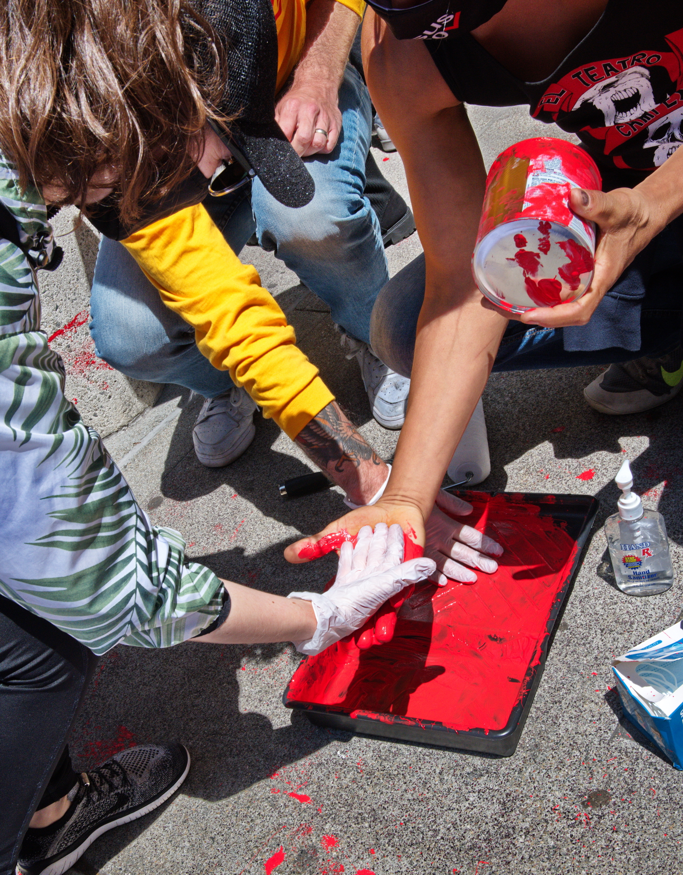 unmistakable message, many red “bloody” hands were imprinted on the