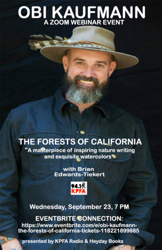 Just as Kaufmann is creating a fresh understanding of the more-than-human world, KPFA Radio is herewith undertaking the new visual media of the webinar, leaping off with The Forests of California - a work unusually deserving of being visible on our screens.