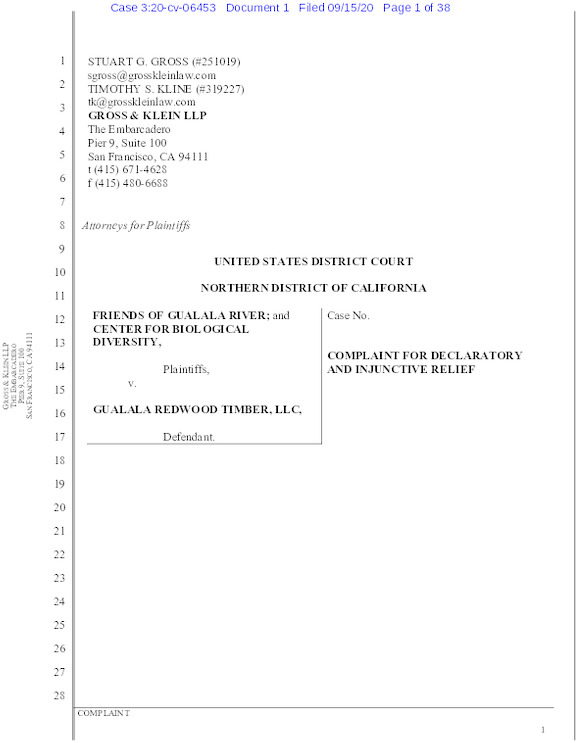 The Center and Friends of Gualala River are represented by Gross and Klein LLP. Friends of Gualala River has created a fundraising drive, chaired by Jeanne Jackson and Lynn Walton, entitled “We Speak for the River,” which can be found on FoGR’s website.