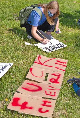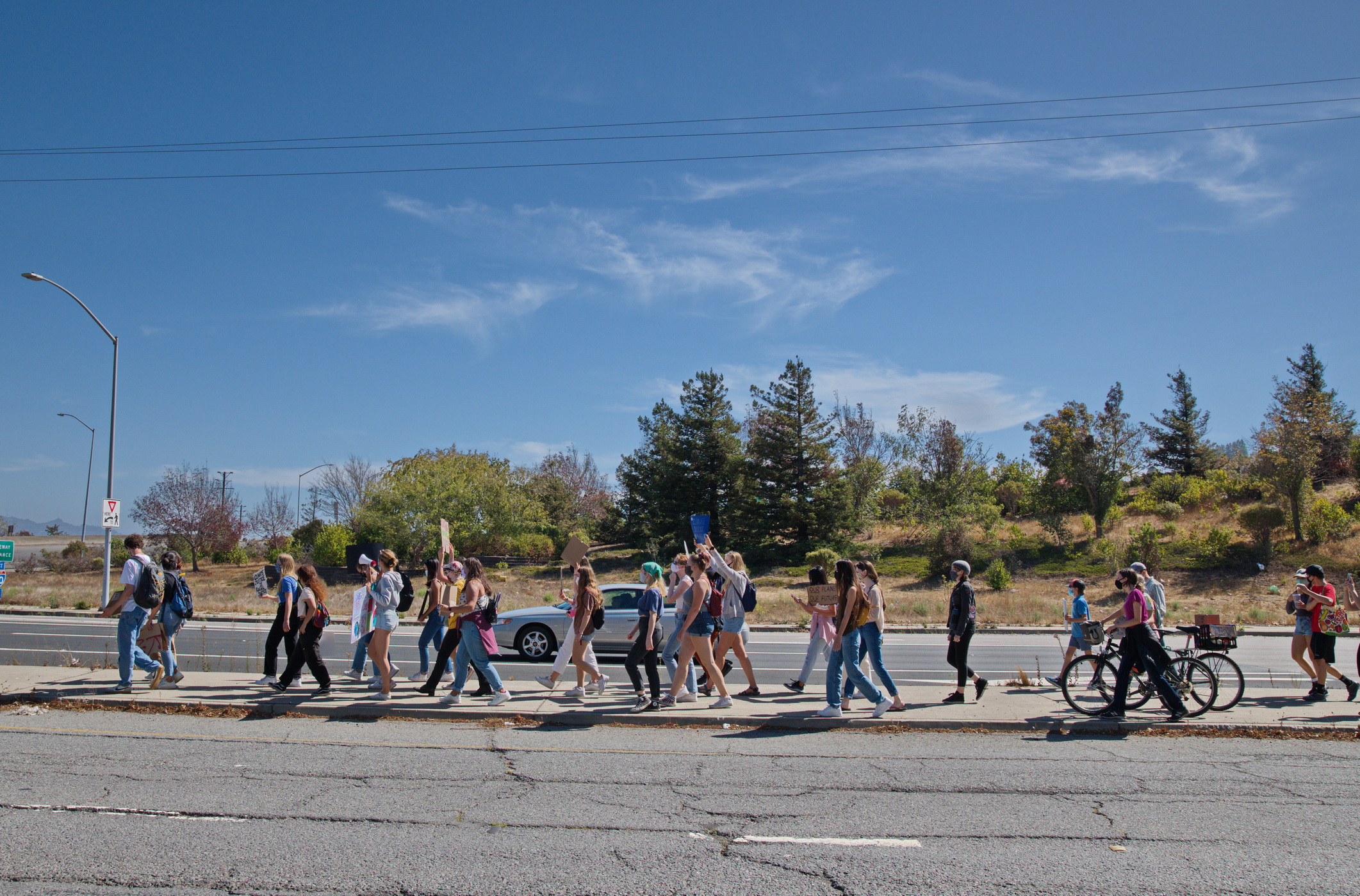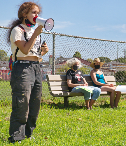 On Saturday Sept. 25, about forty Richmond High School students assembled in Judge George D Carroll Park to mark the Global Climate Day Of Action. They finished up their signs, heard speeches and then set off on their march. Organized by Youth Solidarity Project, shouting slogans they marched through a couple of Richmond's quaint streets, along and then under the freeway about a mile and a half to Chevron's sprawling refinery and headquarters. Many passing cars honked their approval. More speeches were then given in front of one of Chevron's locked gates.A Youth Solidarity Project statement read: