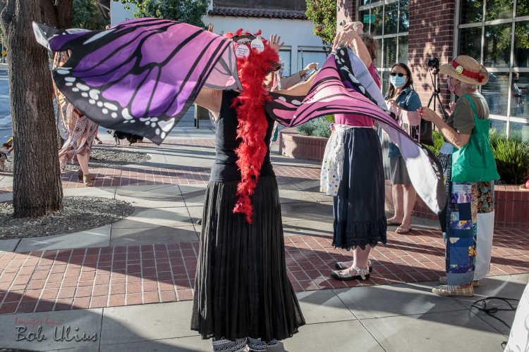 A Silicon Valley DSA member contributed humorous chants that the Raging Grannies turned into a poetry reading.* The Grannies started the party with a drumming/marching routine and performed the @danceofpeace under the expert direction of Sharat G. Lin.