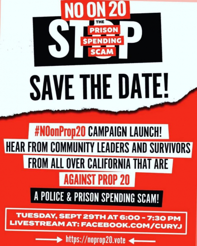 No on Prop 20: Virtual Rally to Stop The Police & Prison Spending Scam w/ CURYJ Oakland