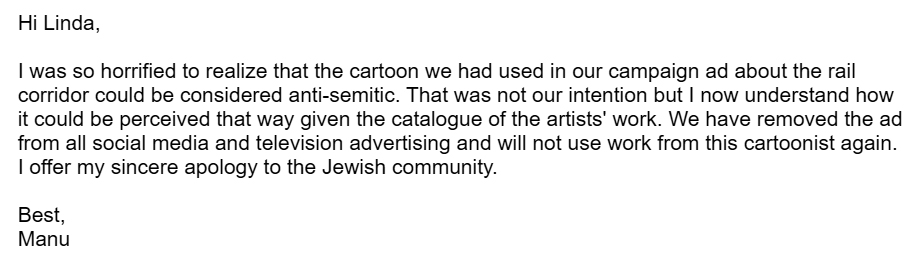 That campaign postcard you reference, I was among the Manu supporters who responded to the Manu campaign, to the invitation, if we were up for it, to take a bunch of postcards and handwrite to our Community why we support Manu for Supervisor. That particular postcard-writer, bless her heart, is a Jewish person who wrote her postcards to her Jewish Community, in all innocence. And now she has been totally roundly publicly-shamed for that. This comes across as a tactic to frighten people off from even stepping in. She has apologized. She has said she didn't realize it would be offensive. She has even apologized to the Manu campaign for causing them so much aggro. What is a person to do? We are sincerely seeking a robust democratic process, real conversations. How else are we ever going to embody "a government of the People by the people for the people". This shit is just so heartbreaking.