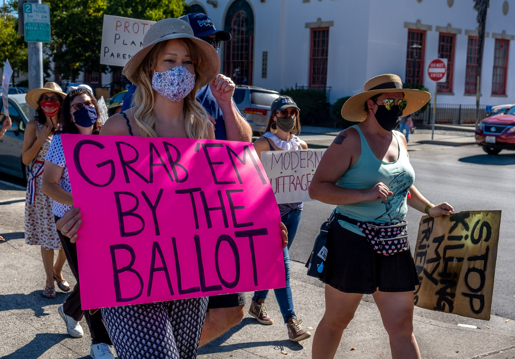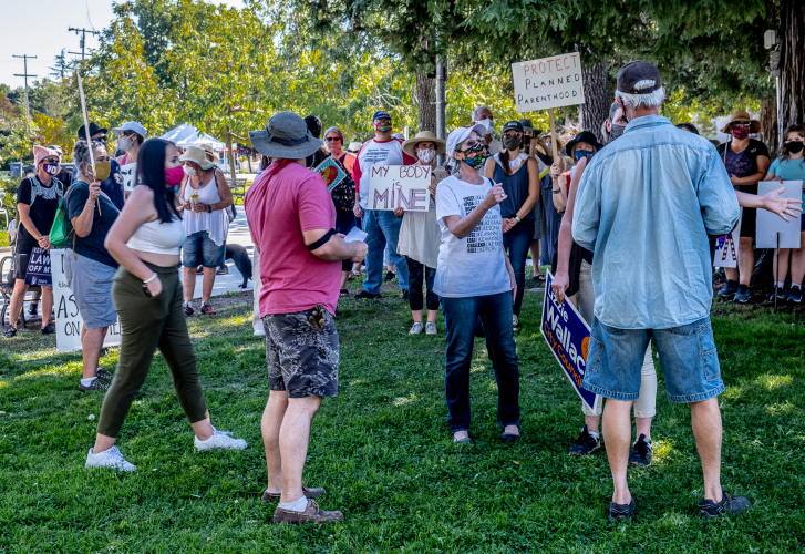 About 200 people rallied then marched in the North Bay city of Petaluma on October 17. Placards called for support for abortion rights groups Planned Parenthood and NARAL. Some called out the GOP for its assault on women and hypocrisy. The upcoming election on everyone's mind, protesters proclaimed "we are women and we will vote."