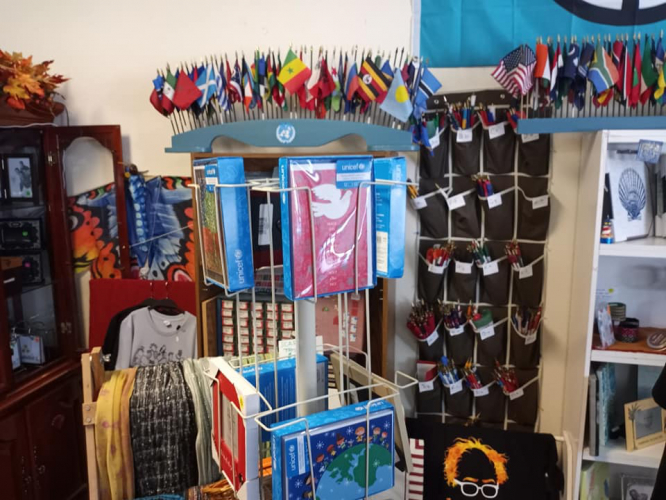 Locally, the United Nations Association of Santa Cruz County works to provide funding for UNICEF through sales of arts and crafts from around the world in addition to pins and flags of many nations. In the UN tradition, our work reflects our shared values as a community. UNA Santa Cruz fosters community humanitarian advocacy by acting as a fiscal sponsor for organizations such as Project Homeless Connect, Project Pollinate and the annual Community Thanksgiving Dinner. UNA Santa Cruz County is dedicated to educating the community and encouraging leadership around human rights, peace and sustainability. You can find our volunteers staffing the United Nations Store, which is located at 903 Pacific Avenue just across from the Santa Cruz Metro station. Our hours are 1-4 weekdays and 1-3 on Saturday and our phone number is 831-426-3101. Please come by and browse our diverse selection of gifts and pick up one or even a dozen of our ever popular UNICEF cards. Every dollar goes directly to helping children around the world.