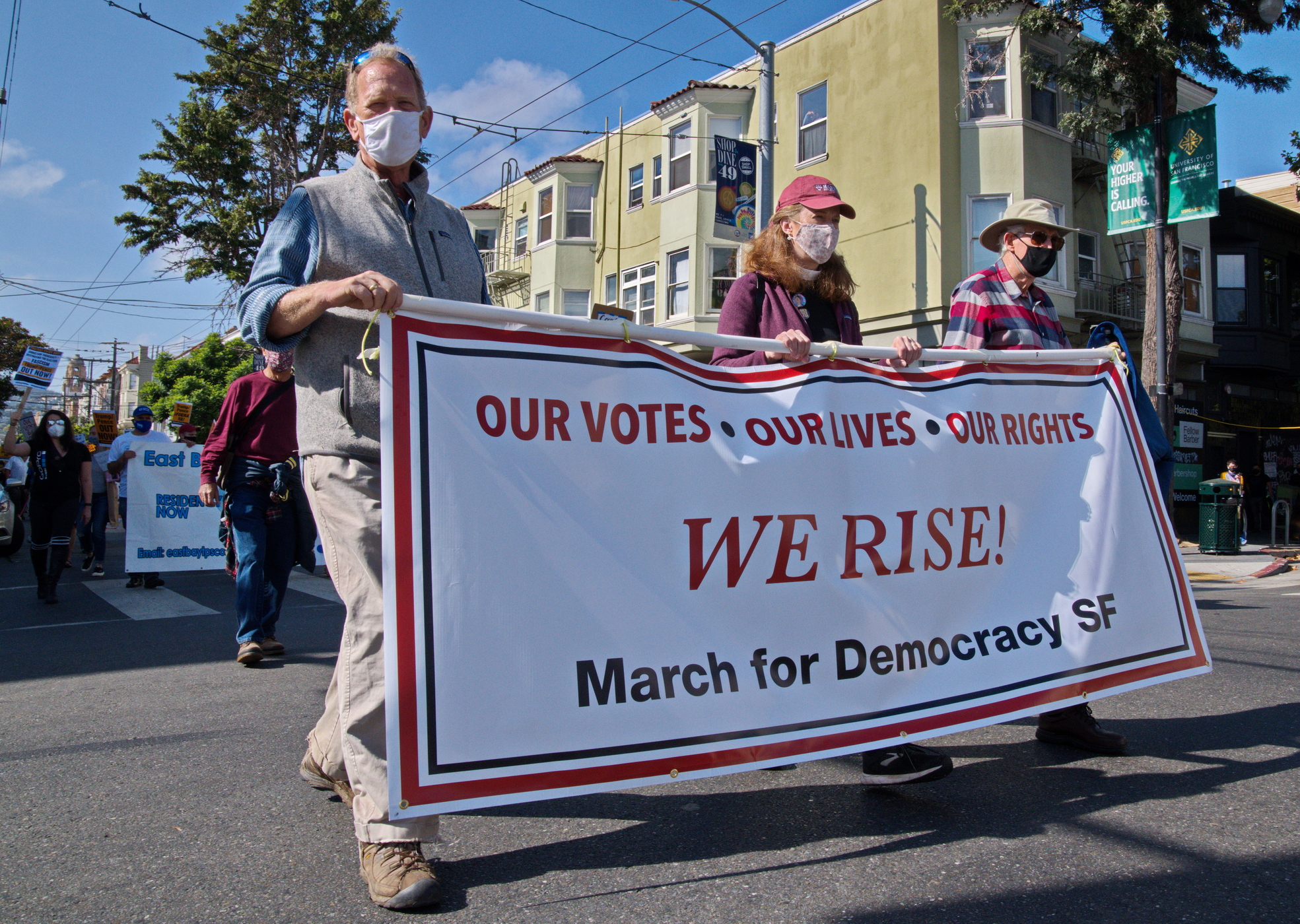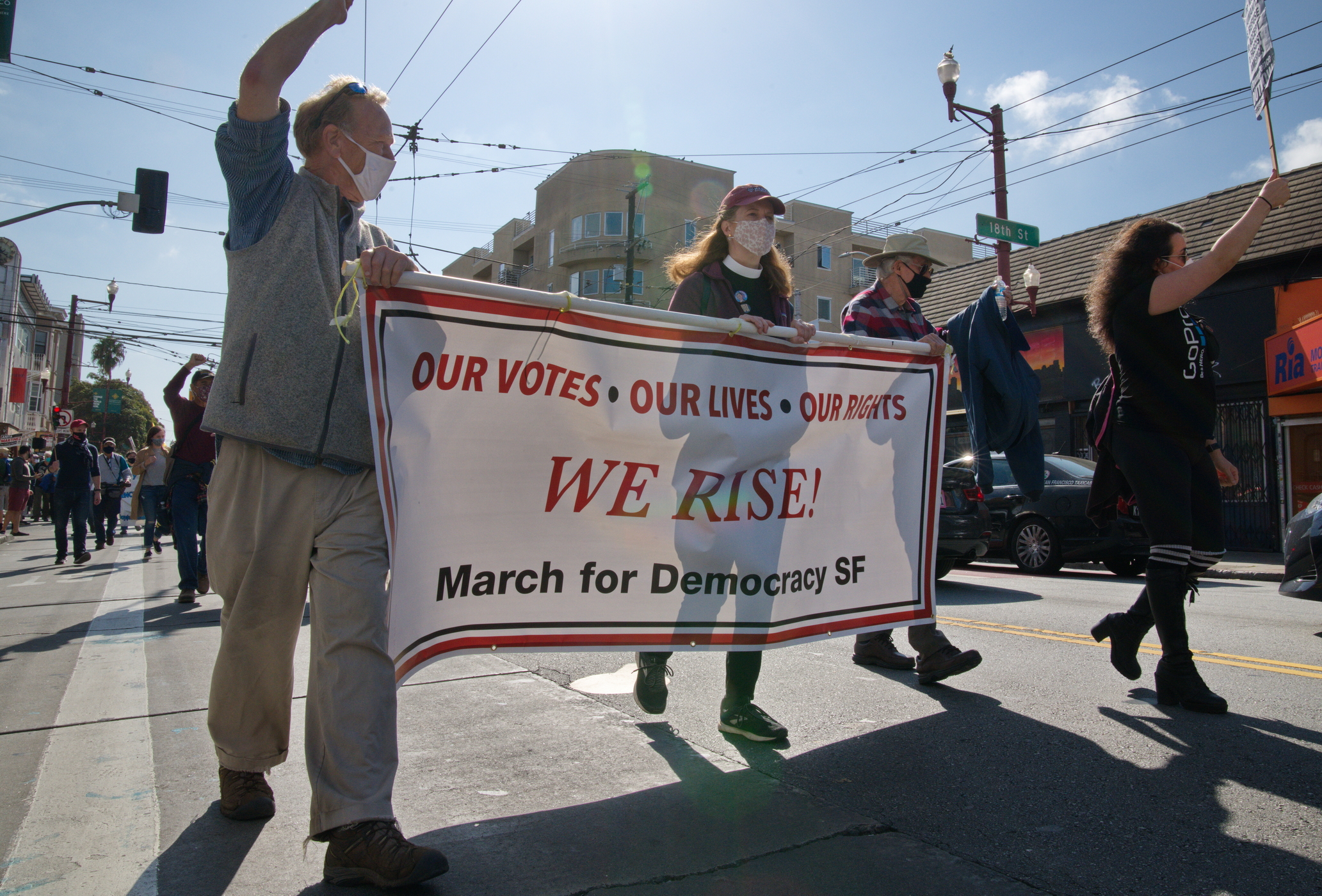 We are working with organizations across the country holding similar marches. We believe it is essential to show publicly that the majority of the American people will not accept any interference in this constitutional process and moral imperative. We will not tolerate efforts to thwart peaceful voting or maneuvers to ignore the people’s intended choice. Let us join together. In solidarity, we are powerful! Let us know if you and/or your organization can participate in our March for Democracy SF.