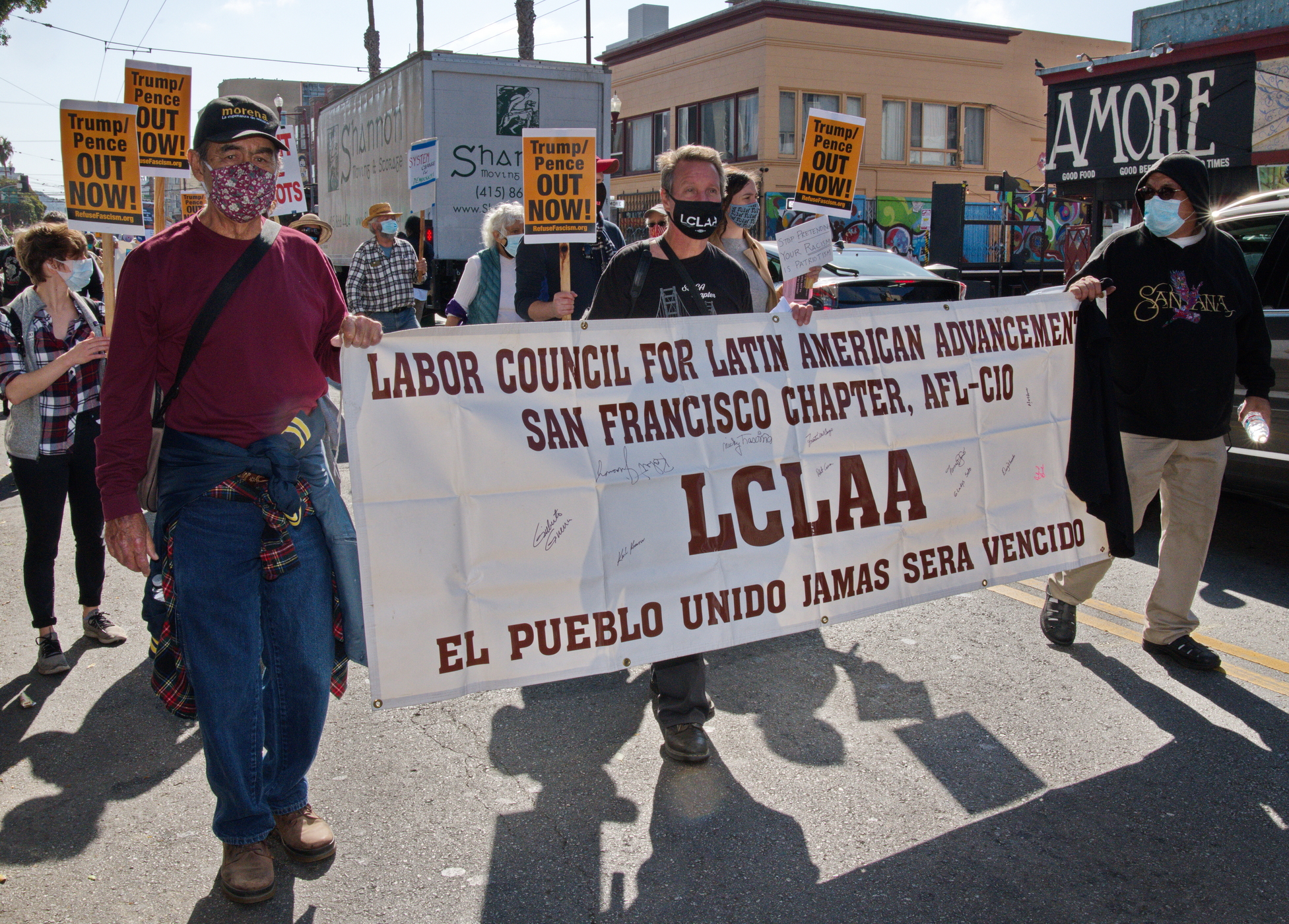 On Saturday, Oct. 24 pro Democracy activists gathered at the site of many recent demonstrations, San Francisco's Mission High School, for a march to City Hall. The action was organized by:- San Francisco Gray Panthers