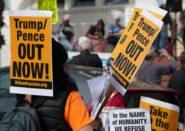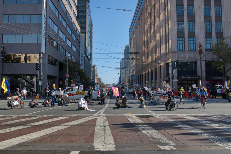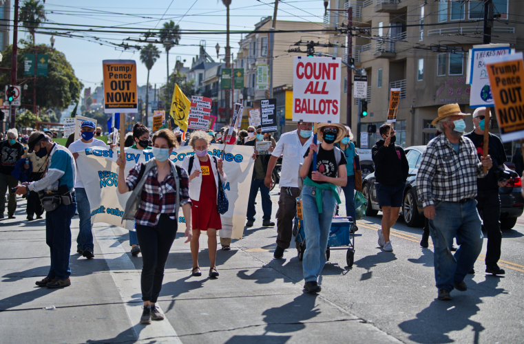 These demonstrations are a necessary reaction to Trump's threats against the election. Another one was planned for the following day at the Embarcadero.
