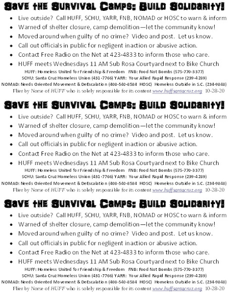 1. Executive Order No. 2020-20 –Driving away the "nuisance" of Food Not Bombs and surrounding encampments at City Parking Lot No. 27; (signed September 25, Food Not Bombs driven out of Lot #27 on Oct. 2)