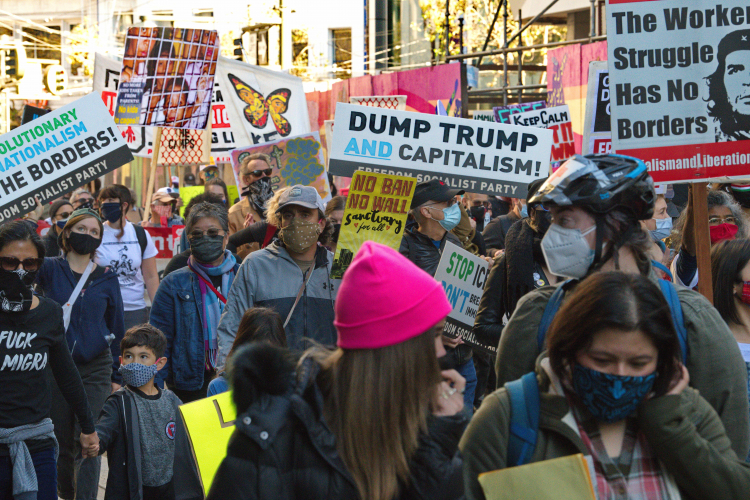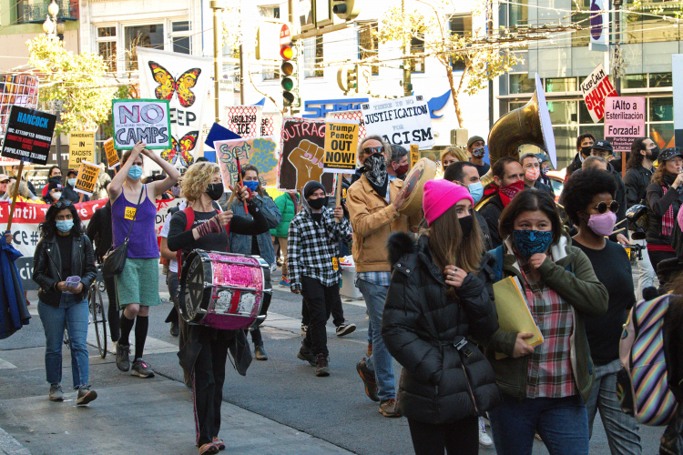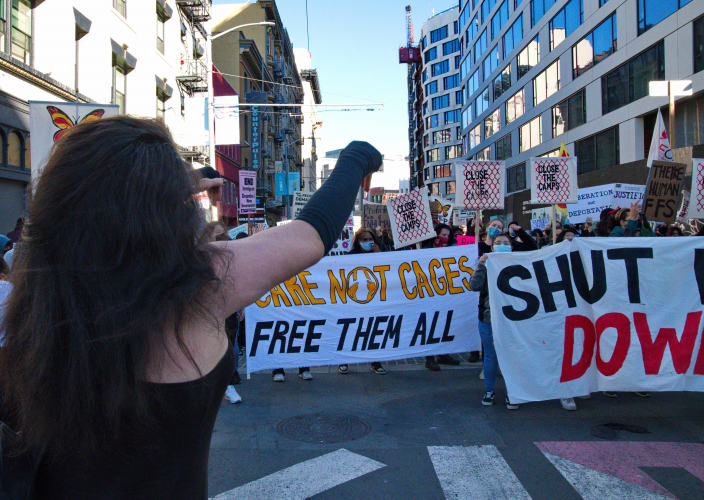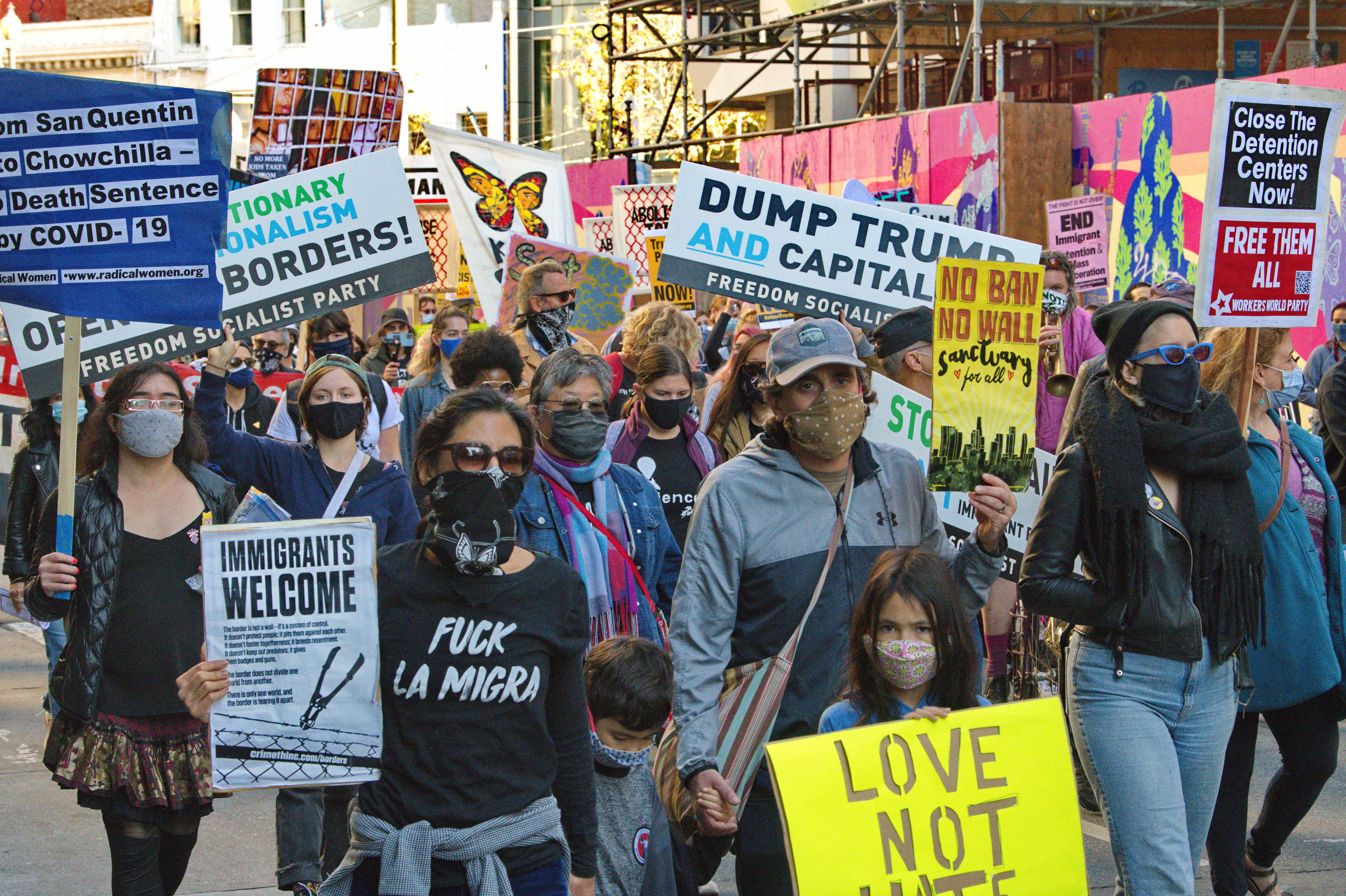 Two demonstrations, one to repudiate a would be dictator and the other to protest the US' crimes against humanity at its border, took place in San Francisco