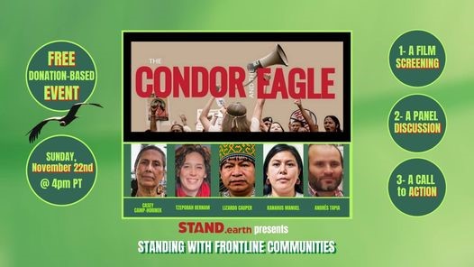Stand.earth is proud to be partnering with "The Condor & The Eagle" team and an inspiring panel of Indigenous leaders to bring you this event. We hope that you’ll join us for the film and stay to hear directly from our speakers about what you can do to fight for climate justice and support impacted communities.