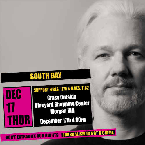If you weren't able to join us 12/10/20 in Oakland @11AM at Barbara Lee's Offc or San Francisco @3pm at Nancy Pelosi's house, or in San Jose 12/11/20 @Zoe Lofgren's Offc, this is another opportunity to stand for an innocent journalist's life in peril and all truth-tellers/Whistleblowers- TO USE OUR VOICE TO SAVE LIVES & REFORM BAD LAW!