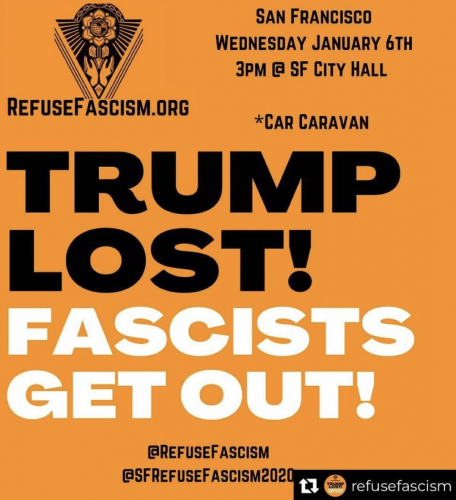 The caravan will begin with a press conference starting at 3pm in front of San Francisco City Hall. Trump has encouraged violence on January 6 as he has on other important dates, and the non-violent counter-protesters in San Francisco will respond to this coup attempt and the stream of aggression and violence in the District.