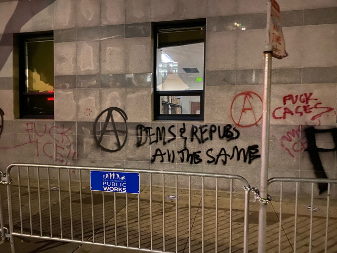 We carried out this attack to show everyone where abolitionists and anarchists stand. On the eve of the inauguration and the so-called transfer of power, street-level white supremacists and the State fight one another for control over all of our lives. We act fiercely for ourselves and our loved ones. In the unfolding chaos, there is real opportunity. The fragility of the State is on full display. We'll continue to attack both the liberal and fascist wings of the State proactively and relentlessly, as they are mutual participants in the maintenance of exploitation and repression. In the final analysis, they are functionally the same.