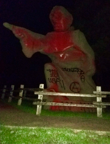 White supremacist symbol of colonization thoroughly defaced in solidarity with indigenous resistance
