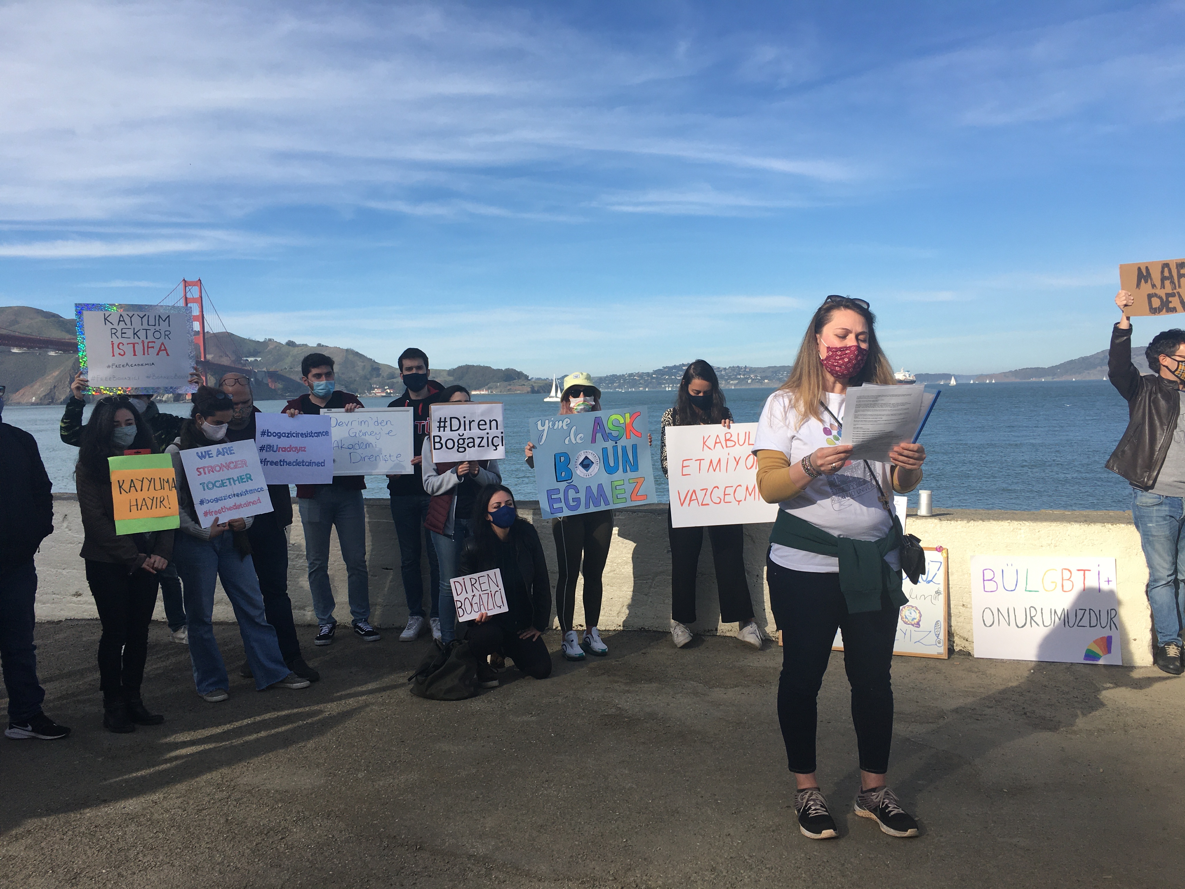 Dozens of graduates and supporters of Boğaziçi University rallied in SF and spoke out against the Erdogan's government appointment of a Rector who plagiarized others for his work and is a crony of Erdogan's AKP.