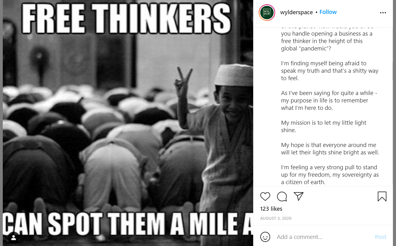Wylder Space Hosts "Freedom Fighters" Meeting, Owner Posts About Q and the "Plandemic"