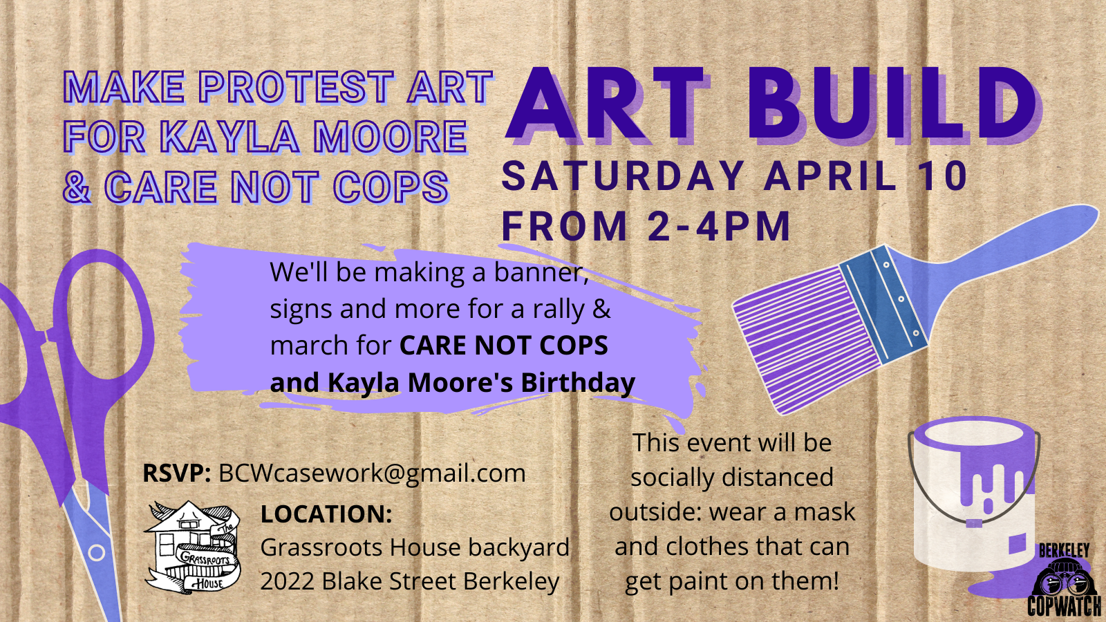 Help us build art for a rally & march in celebration of what would have been Kayla Moore's 50th birthday. We will be lifting up our demand for a mental health response that does not involve police.