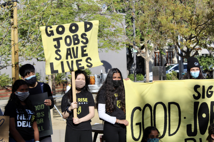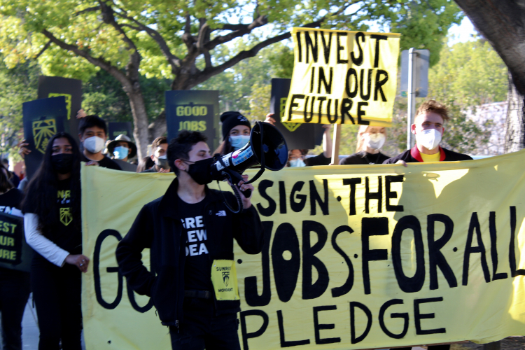 In Palo Alto, members of Silicon Valley Sunrise Movement called on Congresswoman Anna Eshoo to sign the Good Jobs for All Pledge. While she did not sign the pledge, she sent a letter assuring the group she shares their concerns.