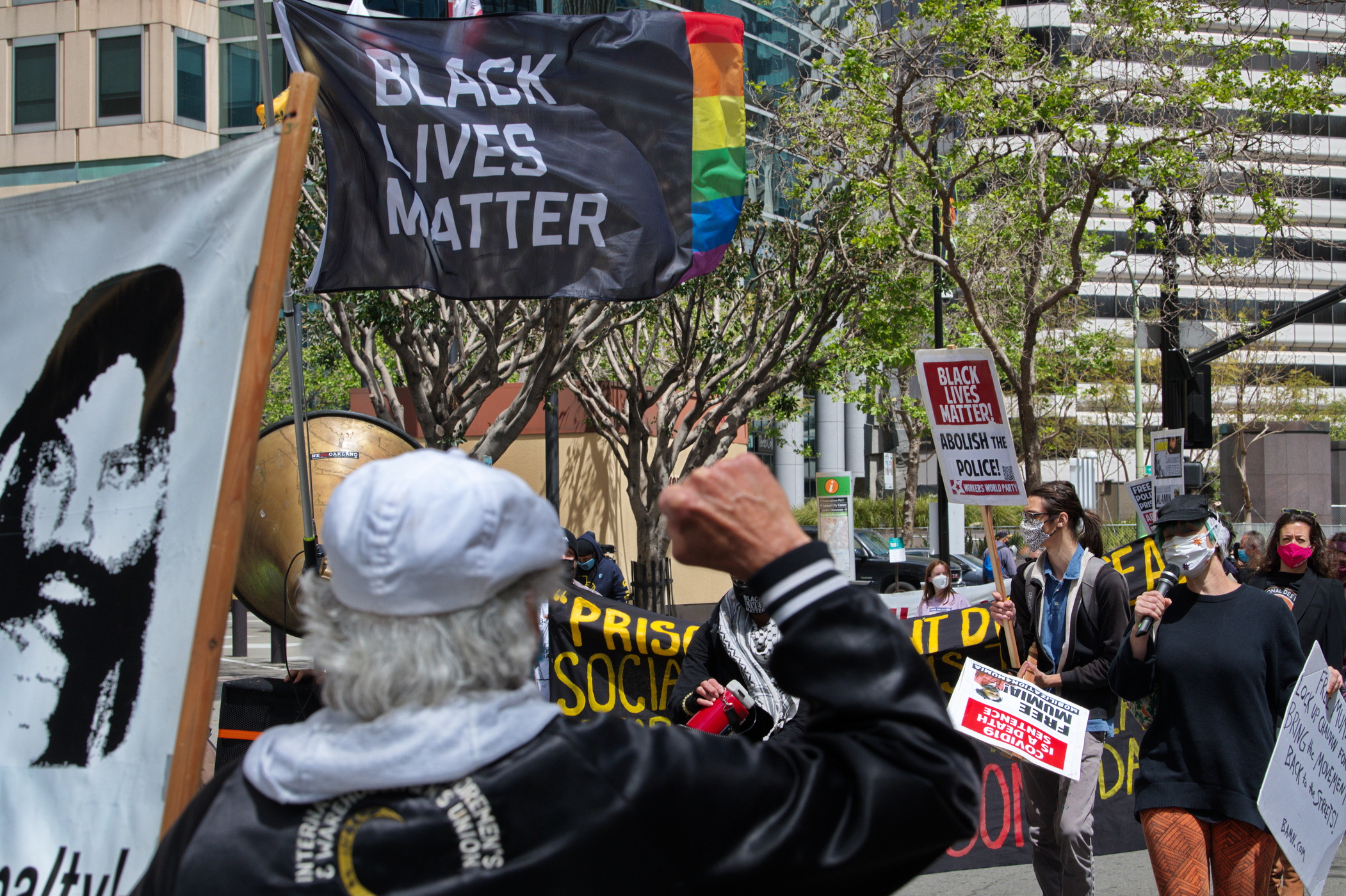 The march assembled in Oscar Grant Plaza. They marched down Broadway to the Oakland Police Department headquarters.where several speakers expressed strong views on the US police-prison system.