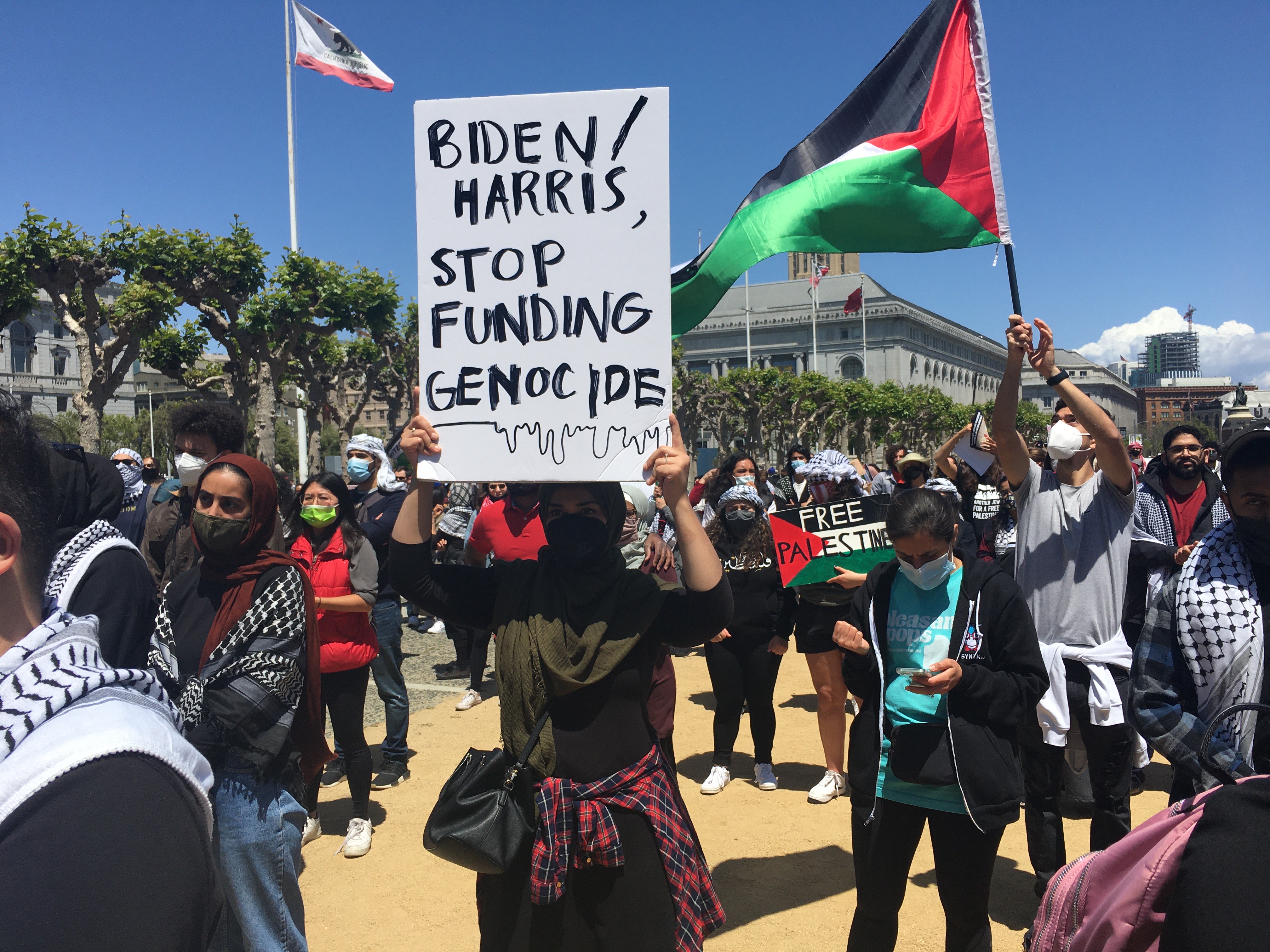 Over 1,000 Palestinians and opponents of the attacks on Palestinians in Israel, Gaza and the West Bank rallied and spoke out in San Francisco on 5/22/21