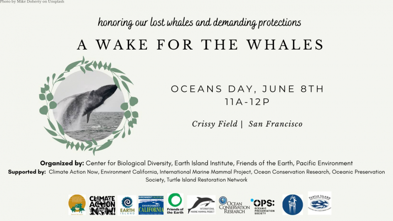 For this year’s Oceans Day, we're holding “A Wake for the Whales.” We'll honor these majestic animals, hear from experts about what our elected officials can do to help them, and take action.