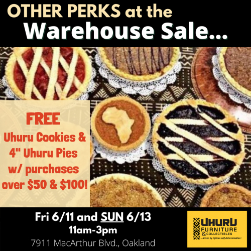 Uhuru Furniture's Off-Site Warehouse Sale will be Friday, June 11th and SUNDAY, June 13th from 11 am to 3 pm both days.